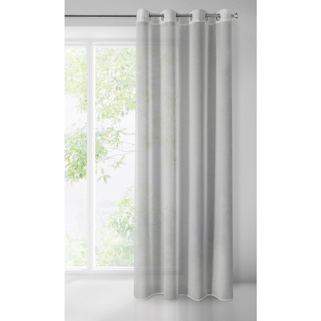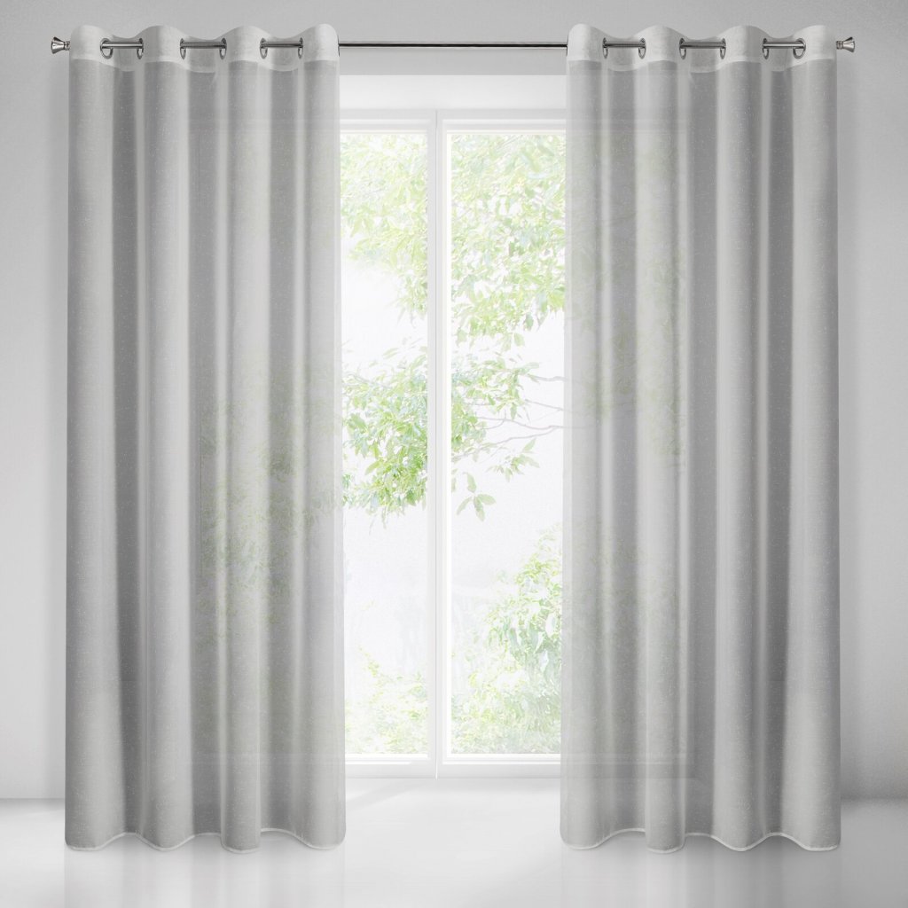 Jemná záclona vyrobená z látky jejíž struktura připomíná padající déšť. Šířka: 140 cm, délka: 250 cm, barva: ocel, hmotnost: 100 GSM, složení: 100 % polyesterDoplňkové parametry