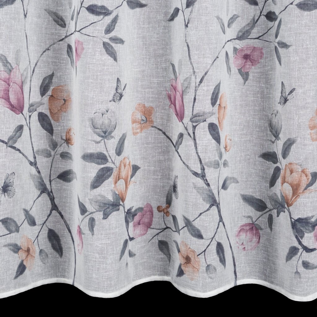 Hotová záclona ANTEA z matné gázy je spojením jemné elegance a moderního stylu. Je vyrobena z vysoce kvalitní tkaniny a má jemný matný povrch. Záclona je zdobená potiskem jemných popínavých květin, která vnáší do prostoru přirozený, romantický akcent a dokonale doplňuje různé styly. Šířka: 140 cm, délka: 250 cm, barva: vícebarevná, hmotnost: 75 GSM, složení: 100% polyester.Doplňkové parametry
