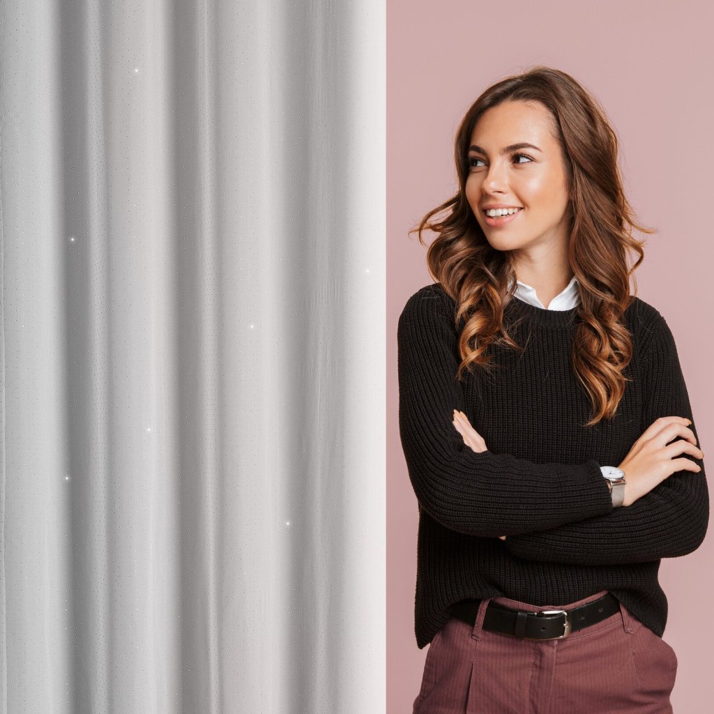 Hotová záclona zdobená kamínky, šířka: 140 cm, délka: 250 cm, barva: bílá, gramáž: 60 GSM, složení: 100% polyester.Doplňkové parametry