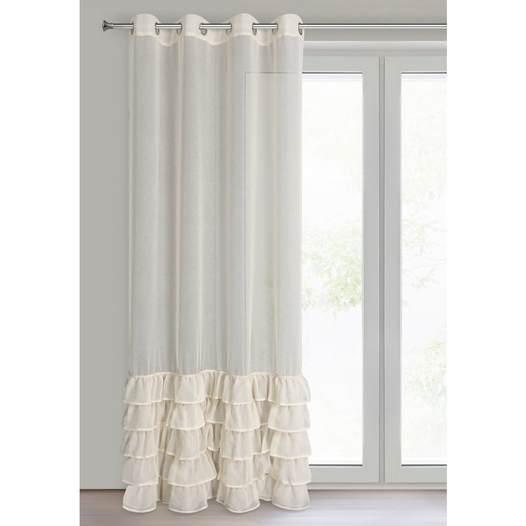 Hotová záclona s volánky, šířka: 140 cm, délka: 250 cm, barva: béžová, hmotnost: 70 GSM, složení: 100% polyester.Doplňkové parametry