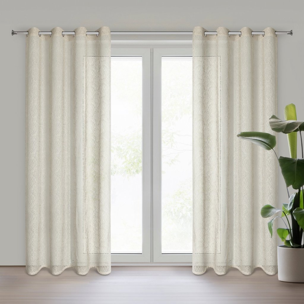 Hotová záclona se síťovanou strukturou, šířka: 140 cm, délka: 250 cm, barva: krémová, složení: 100% polyester.Doplňkové parametry