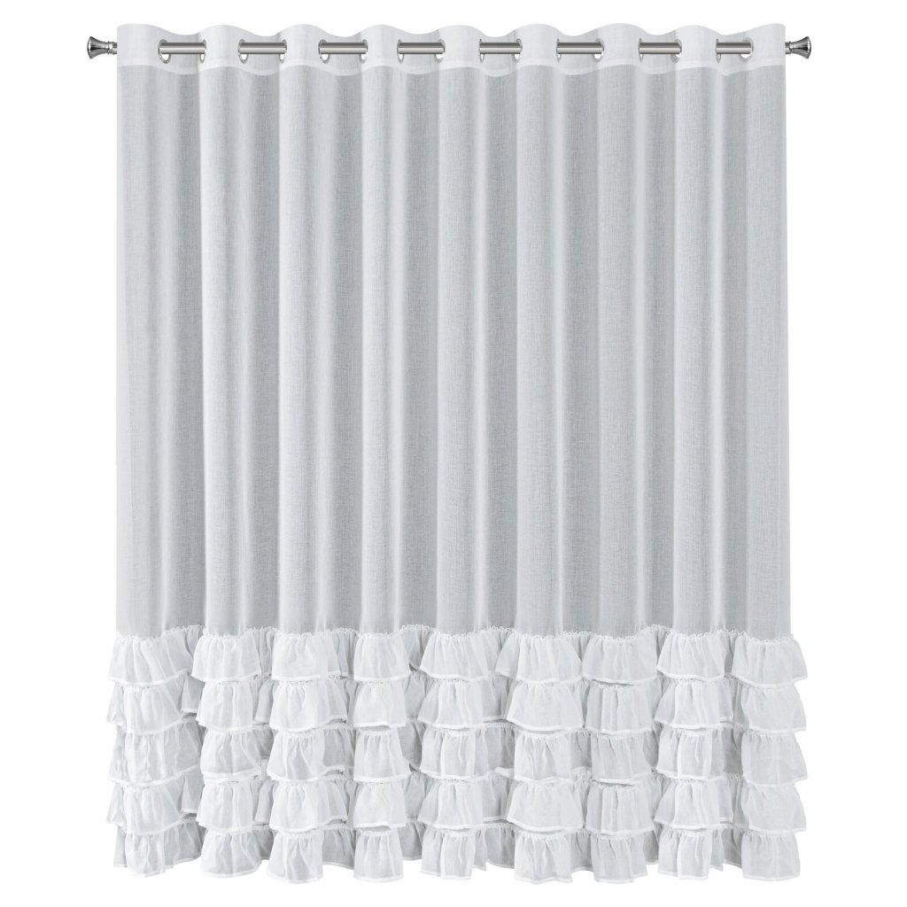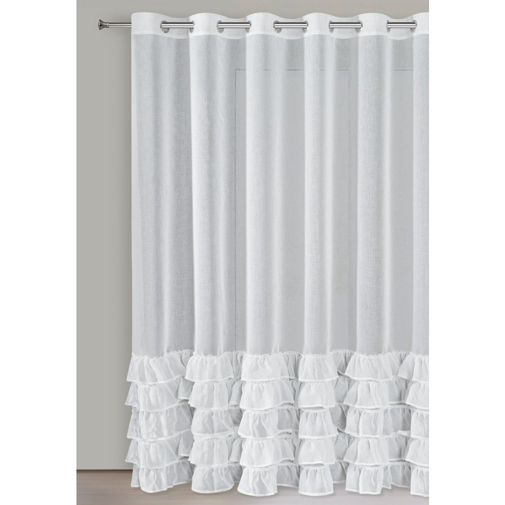 Hotová záclona zdobená volány ve spodní části, šířka: 300 cm, délka: 250 cm, barva: bílá, hmotnost: 70 GSM, složení: 100% polyester.Doplňkové parametry
