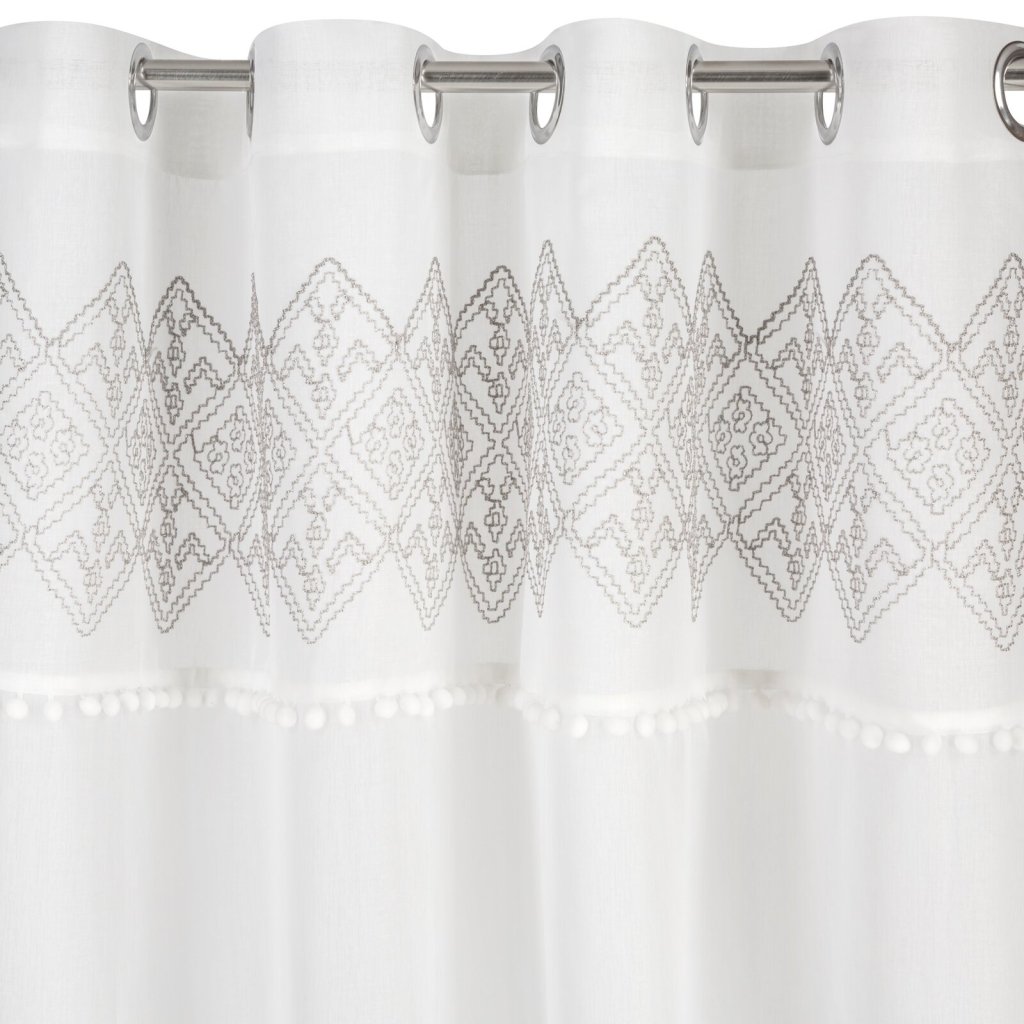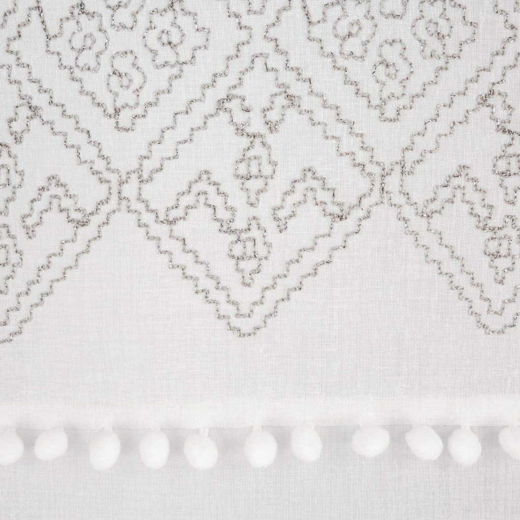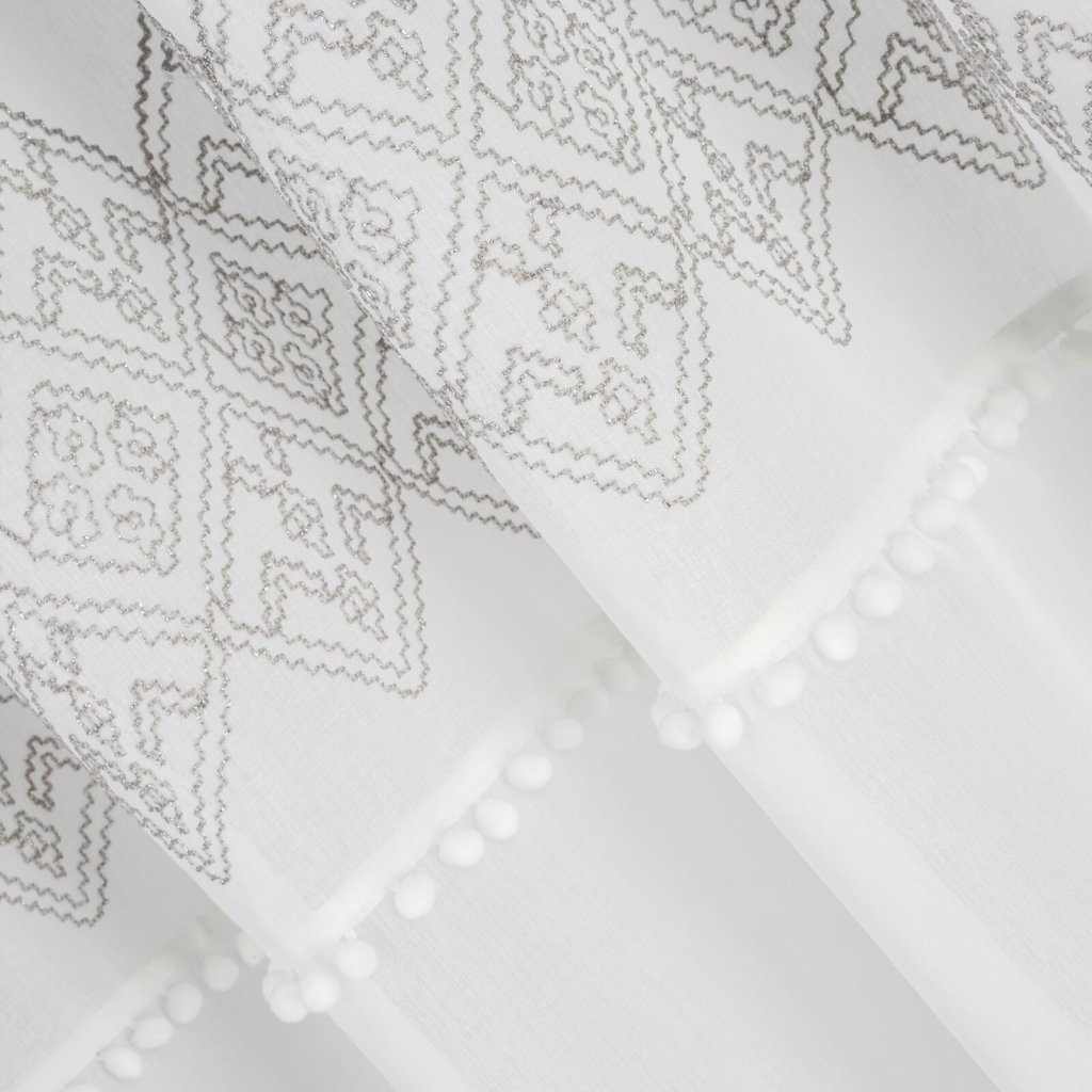 Jemná záclona kombinující tradiční a moderní vzory. Vrchní část zdobí stříbrná výšivka s geometrickým motivem. Šířka: 140 cm, délka: 250 cm, barva: bílá, hmotnost: 66 GSM, složení: 100 % polyesterDoplňkové parametry