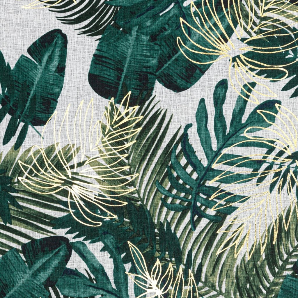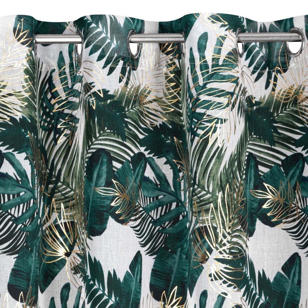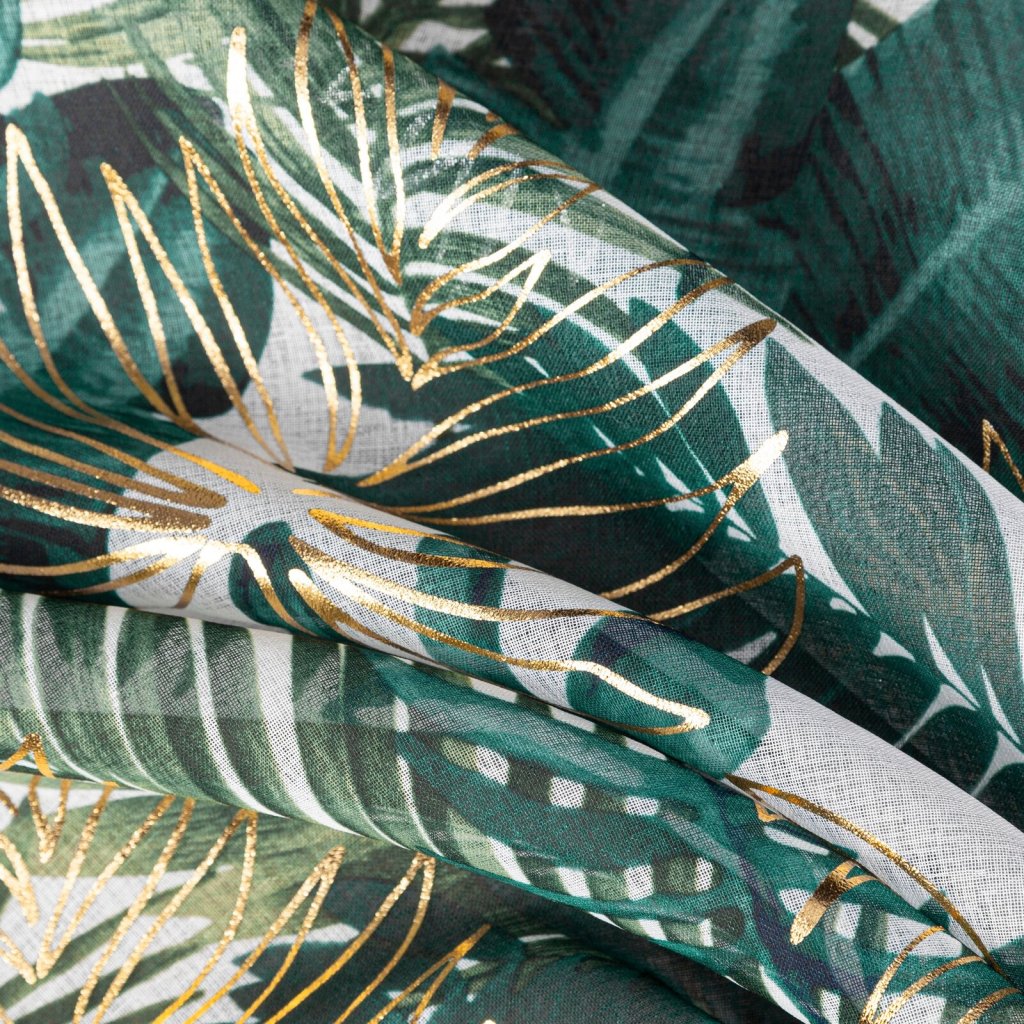 Záclona s botanickými motivy s lesklým potiskem, šířka: 140 cm, délka: 250 cm, barva: vícebarevná, hmotnost: 80 GSM, složení: 100% polyester.Doplňkové parametry