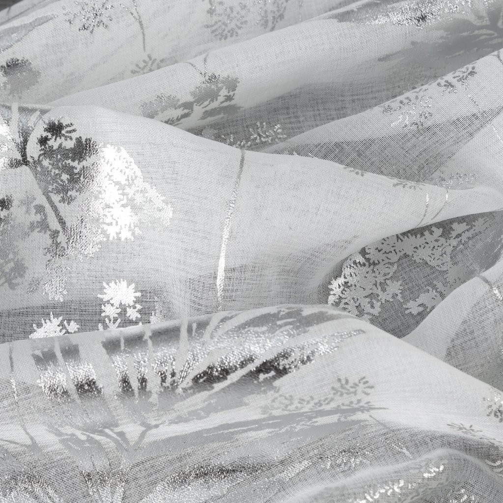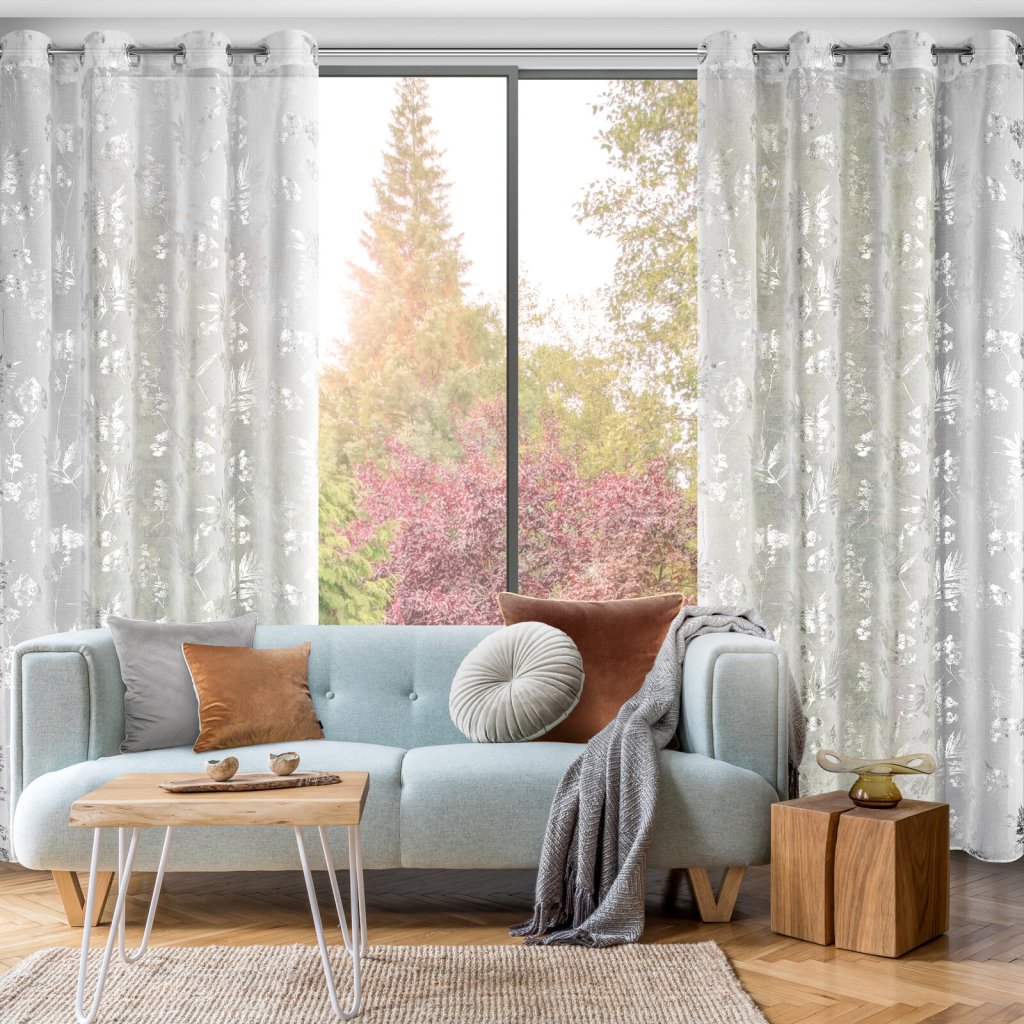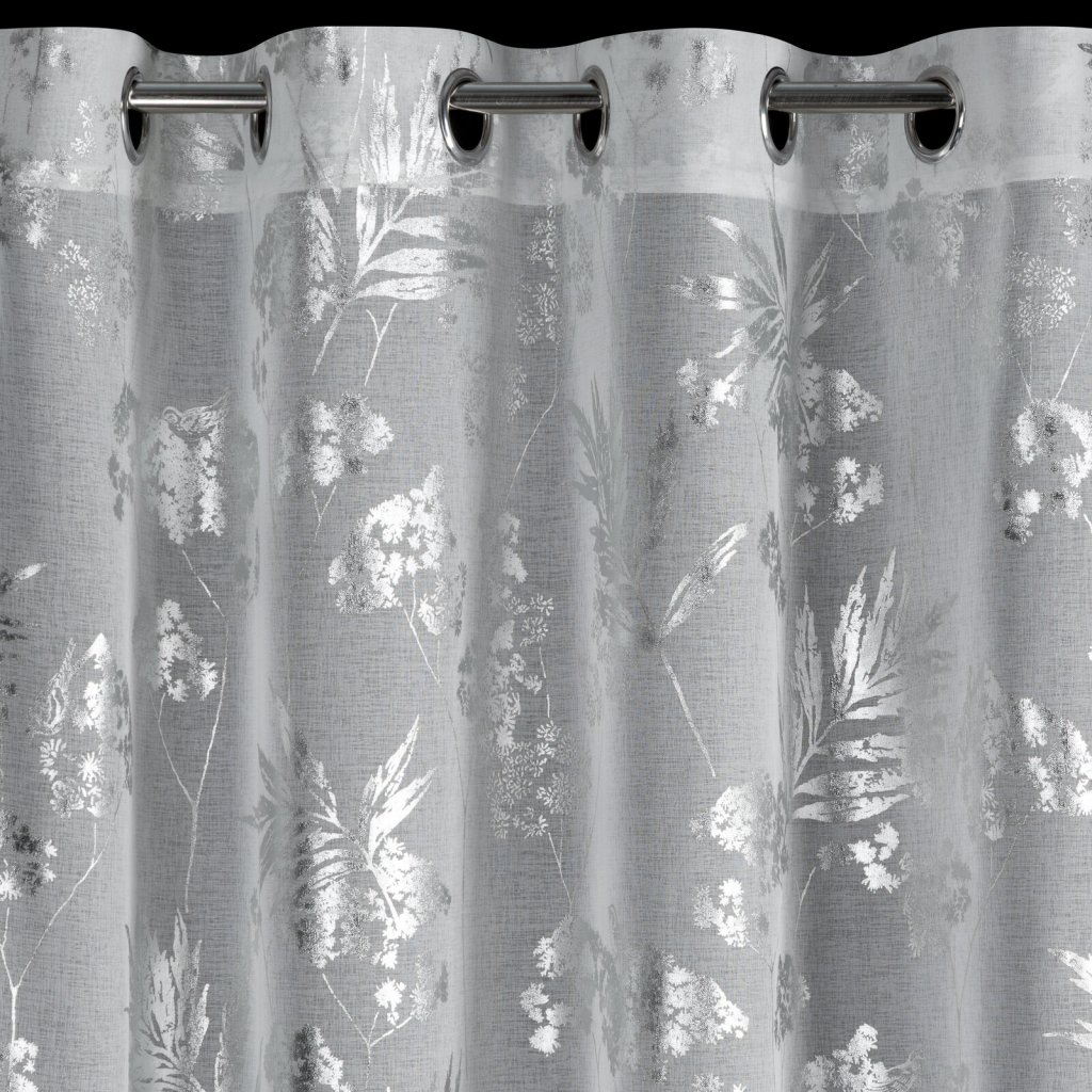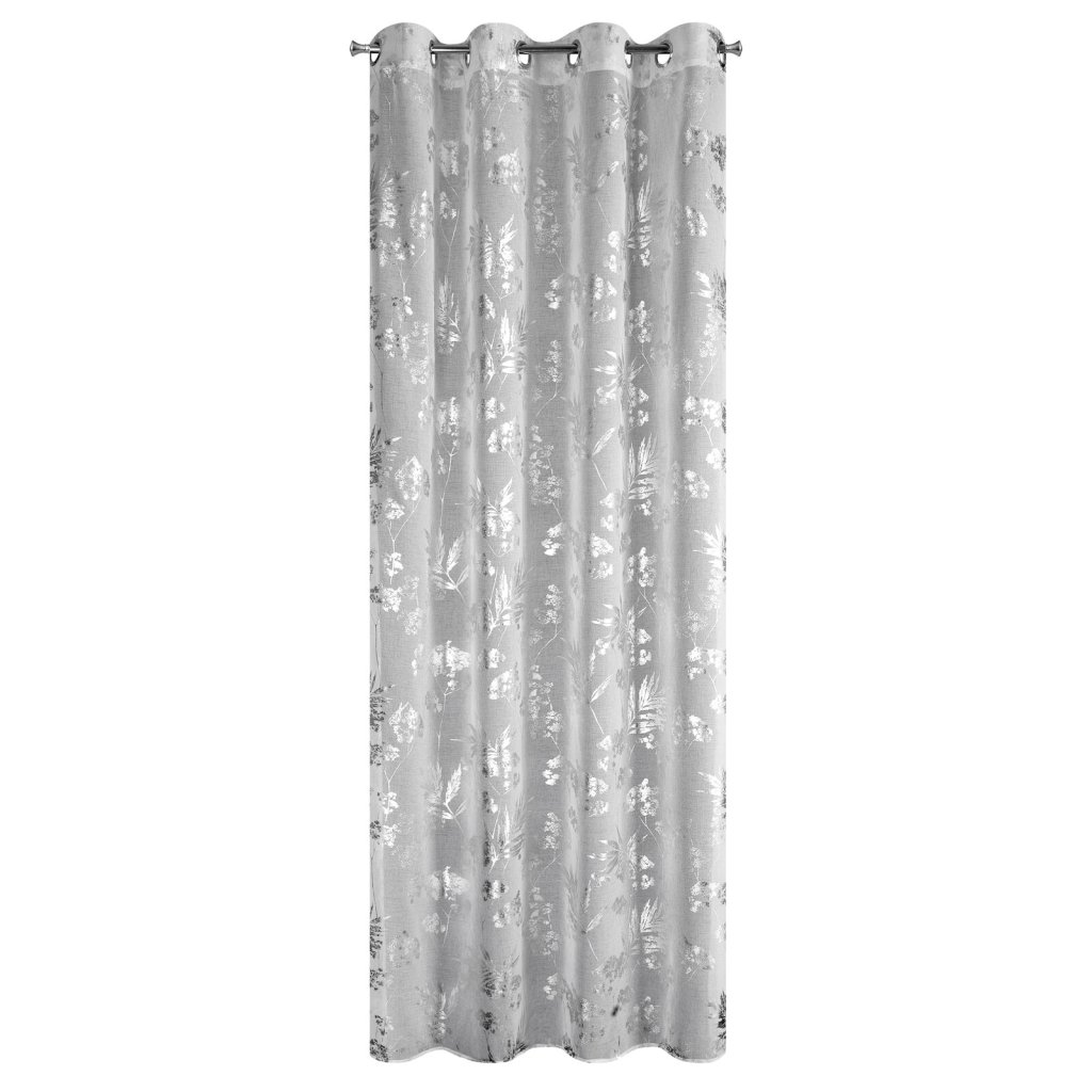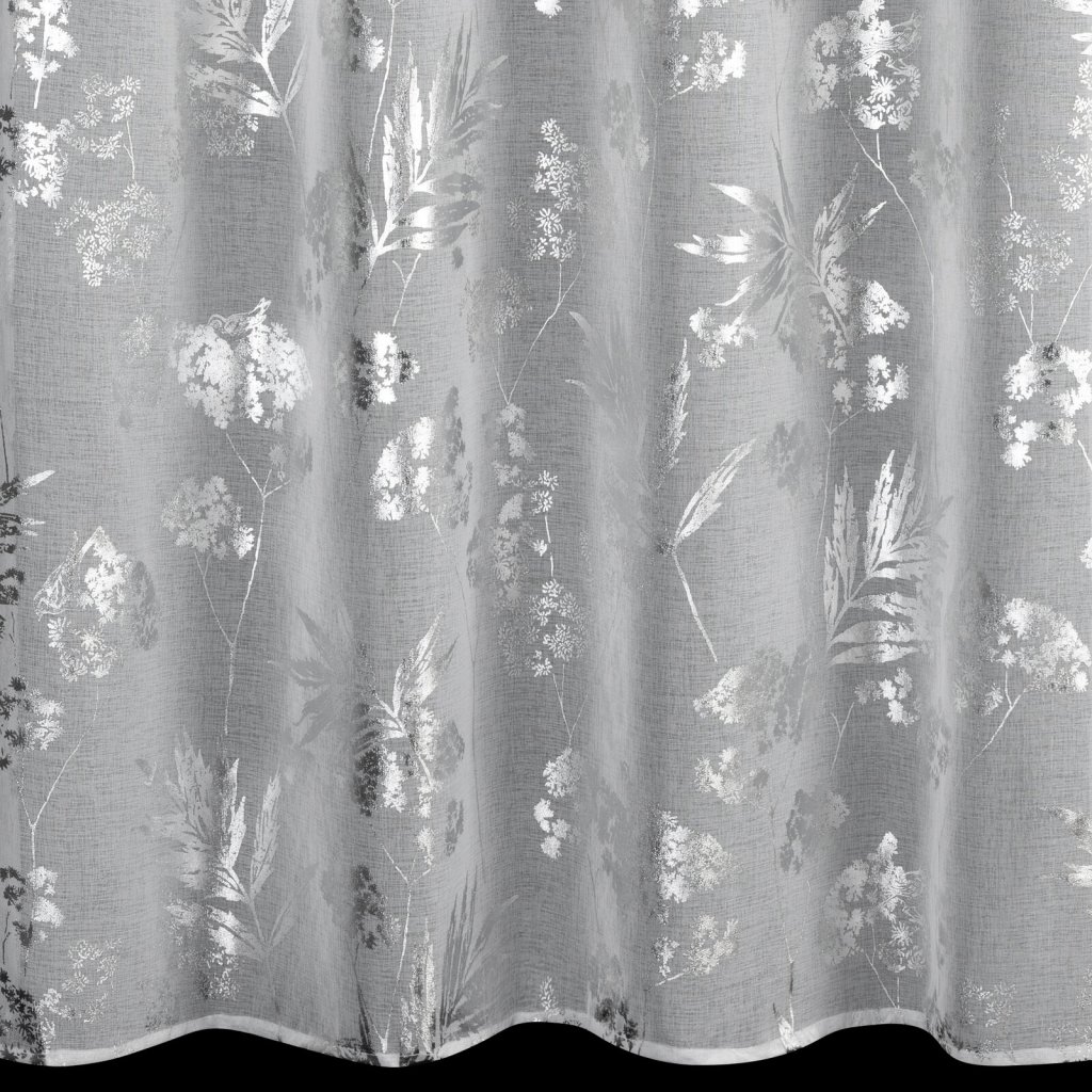 Záclona DELIA je vyrobena z lehké, vzdušné gázy, která zaujme svým jemným, třpytivým rostlinným motivem, který dodává interiéru eleganci a jemný lesk. Šířka: 140 cm, délka: 250 cm, barva: bílá a stříbrná, hmotnost: 70 GSM, složení: 100% polyester.Doplňkové parametry