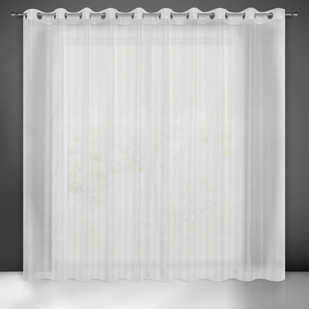 Jednobarevná záclona s minimalistickým jemným stříbrným prošíváním. Šířka: 290 cm, délka: 250 cm, barva: bílá/stříbrná, hmotnost: 90 GSM, složení: 100 % polyesterDoplňkové parametry