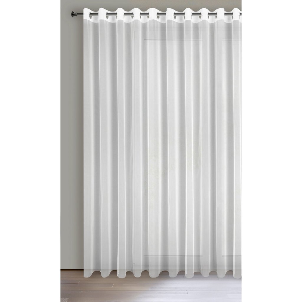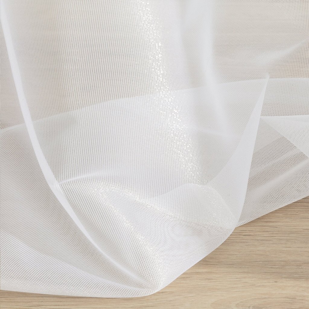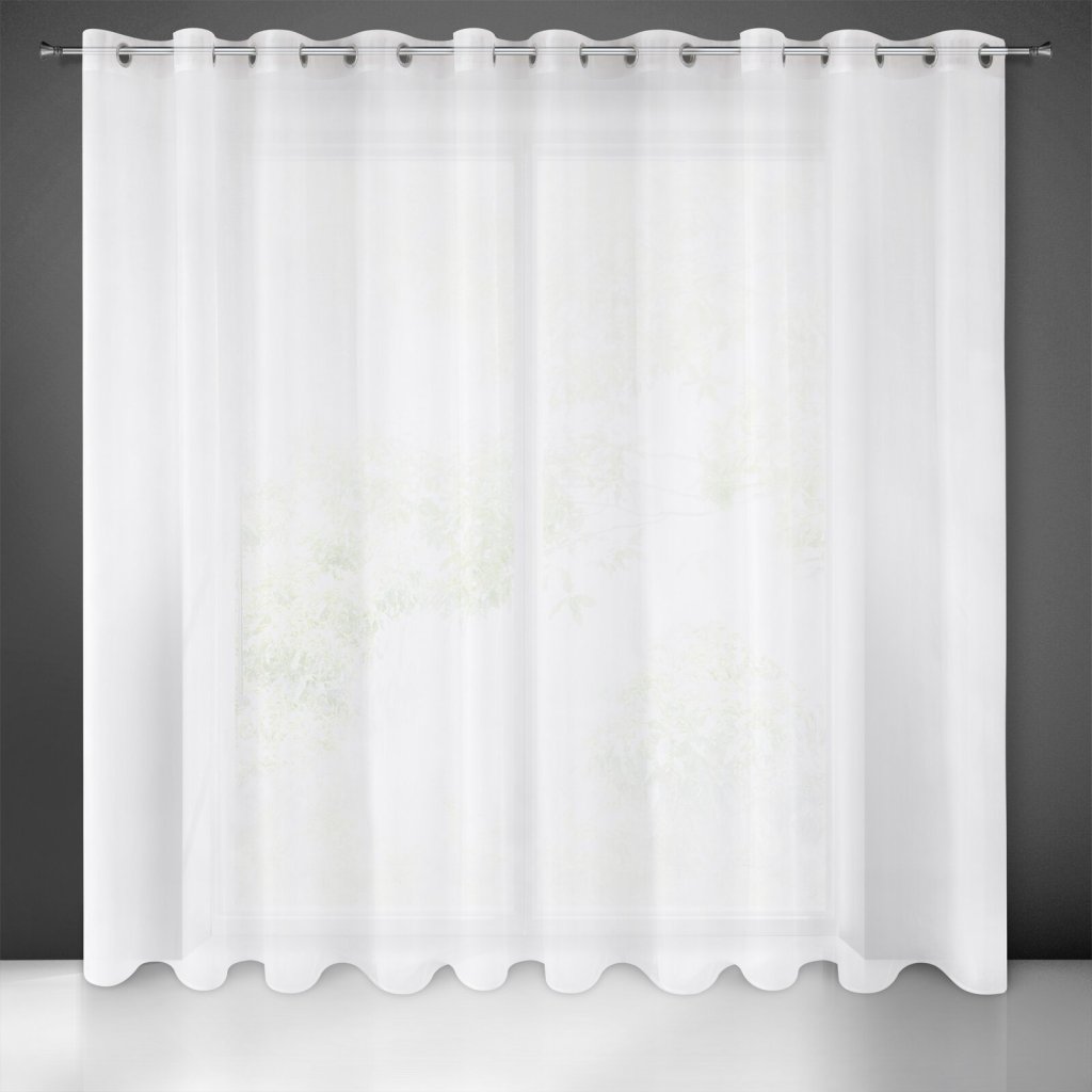 Záclona s jemnou hustou síťovinou. Lesklá látka zaručuje maximální pocit soukromí a propouští světlo do interiéru, šířka: 350 cm, délka: 250 cm, barva: bílá, hmotnost: 35 GSM, složení: 100% polyester.Doplňkové parametry