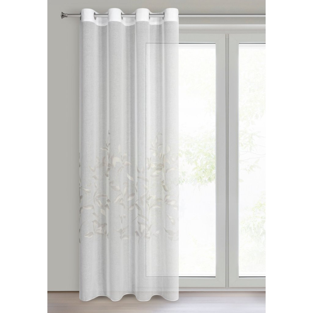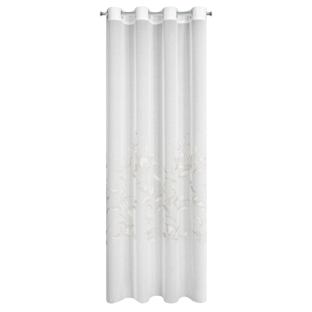 Lehká a vzdušná hotová záclona ESTELLA zdobená motivem listí. Dekorace byla vyrobena s důrazem na detail a dodává interiéru spoustu přirozeného světla. Pečlivě provedené boční a spodní švy zajišťují, že se závěs na bocích nemačká a v okně působí velmi efektně Šířka: 140 cm, délka: 250 cm, kolor: bílá, složení: 100% polyester.Doplňkové parametry