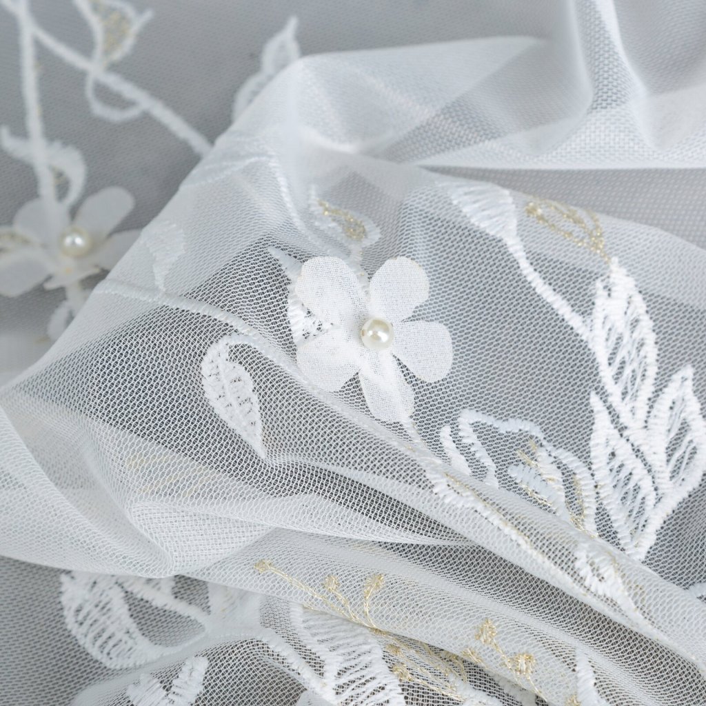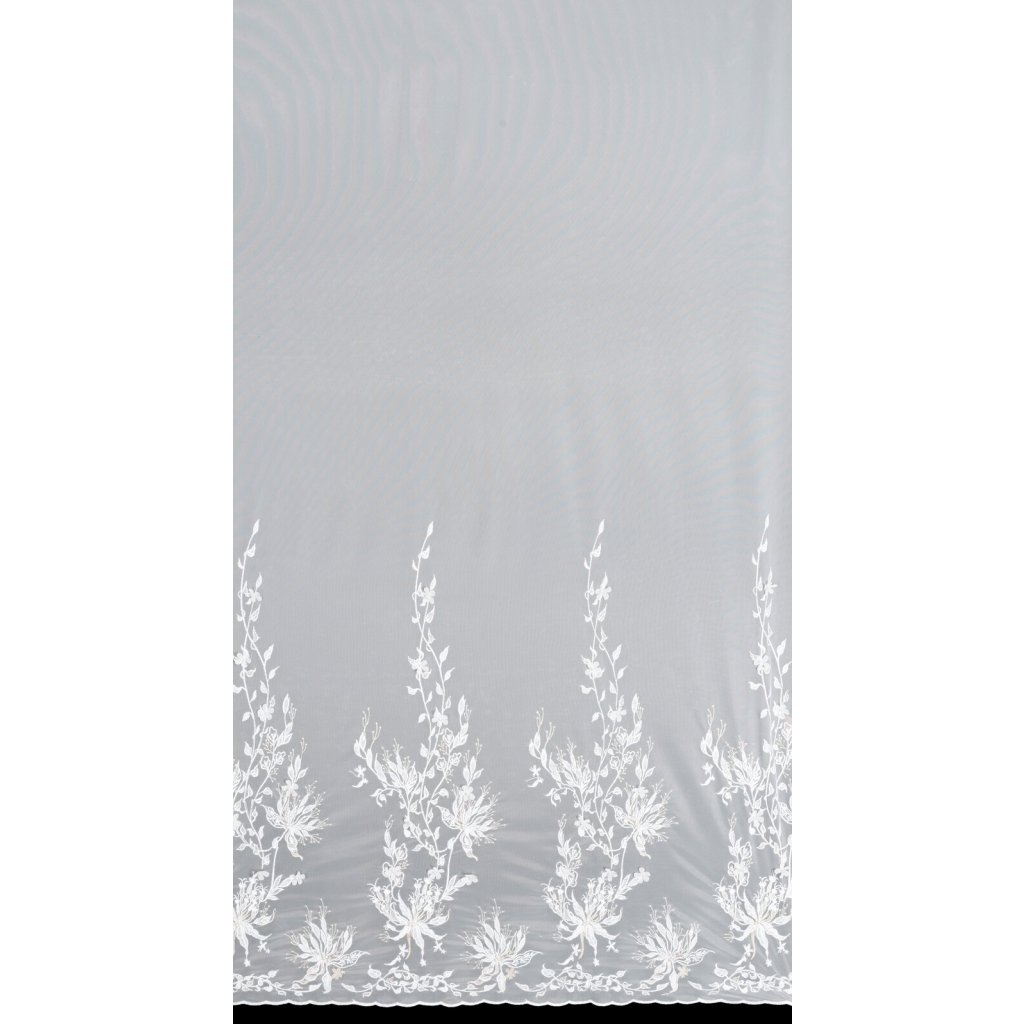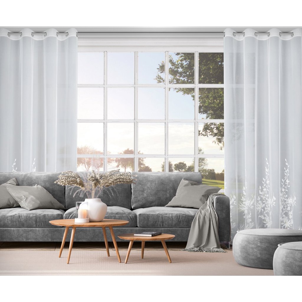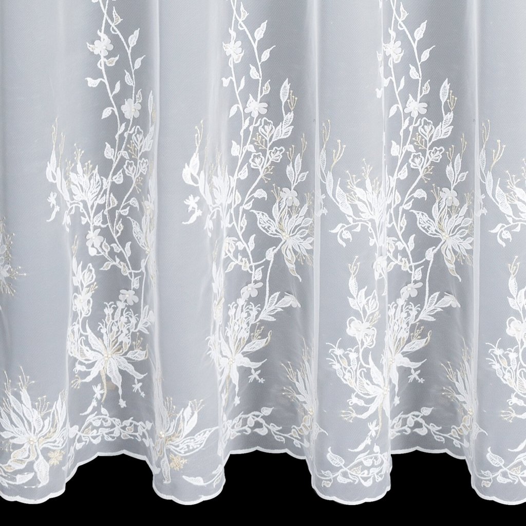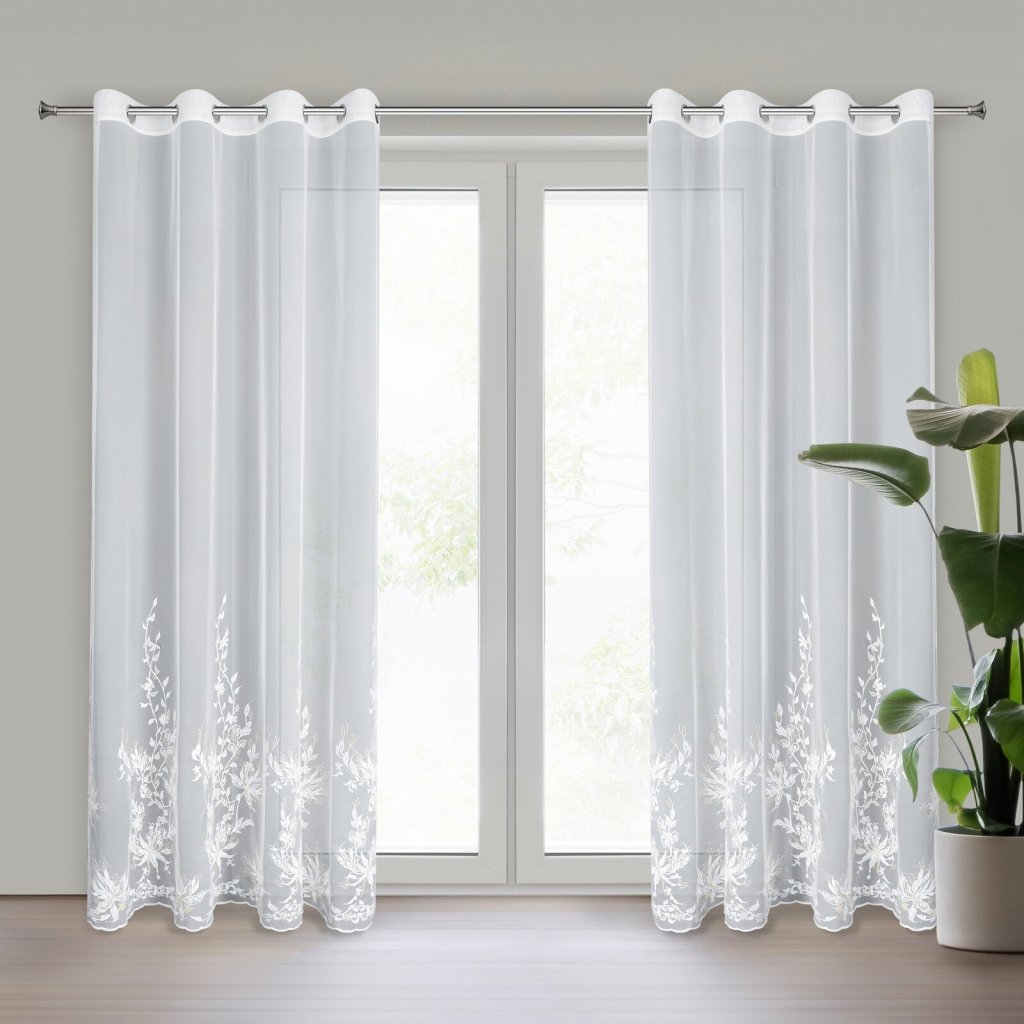Hotová záclona zdobená výšivkou se vzorem květin, šířka: 140 cm, délka: 250 cm, barva: bílá, složení: 100% polyester.Doplňkové parametry