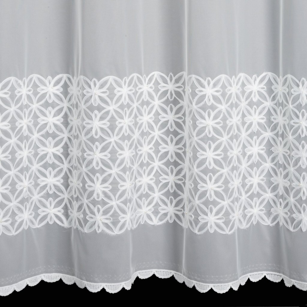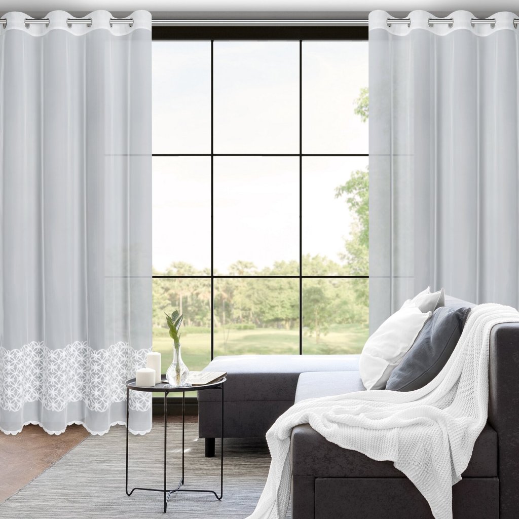 Hotová záclona LIWIA z kolekce Eva Minge vyrobená z lehké a vzdušné látky je jedinečným dekorativním prvkem, který spojuje moderní styl s elegancí. Ozdobený pás s květinovými aplikacemi dodává interiéru originalitu a jemnou hru textur, protože do místnosti vnáší přírodní motiv. Šířka: 140 cm, délka: 250 cm, barva: bílá, složení: 100% polyester.Doplňkové parametry