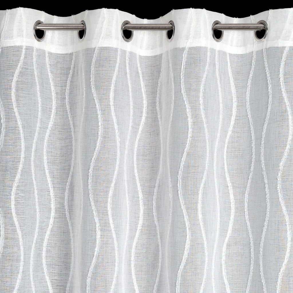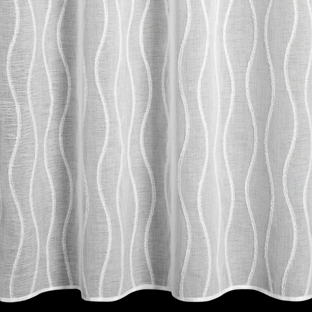 Hotová záclona zdobená geometrickou aplikací, šířka: 140 cm, délka: 250 cm, barva: bílá, složení: 100% polyester.Doplňkové parametry
