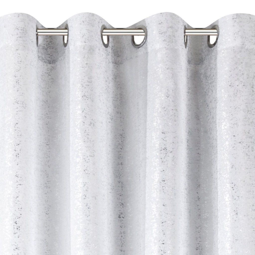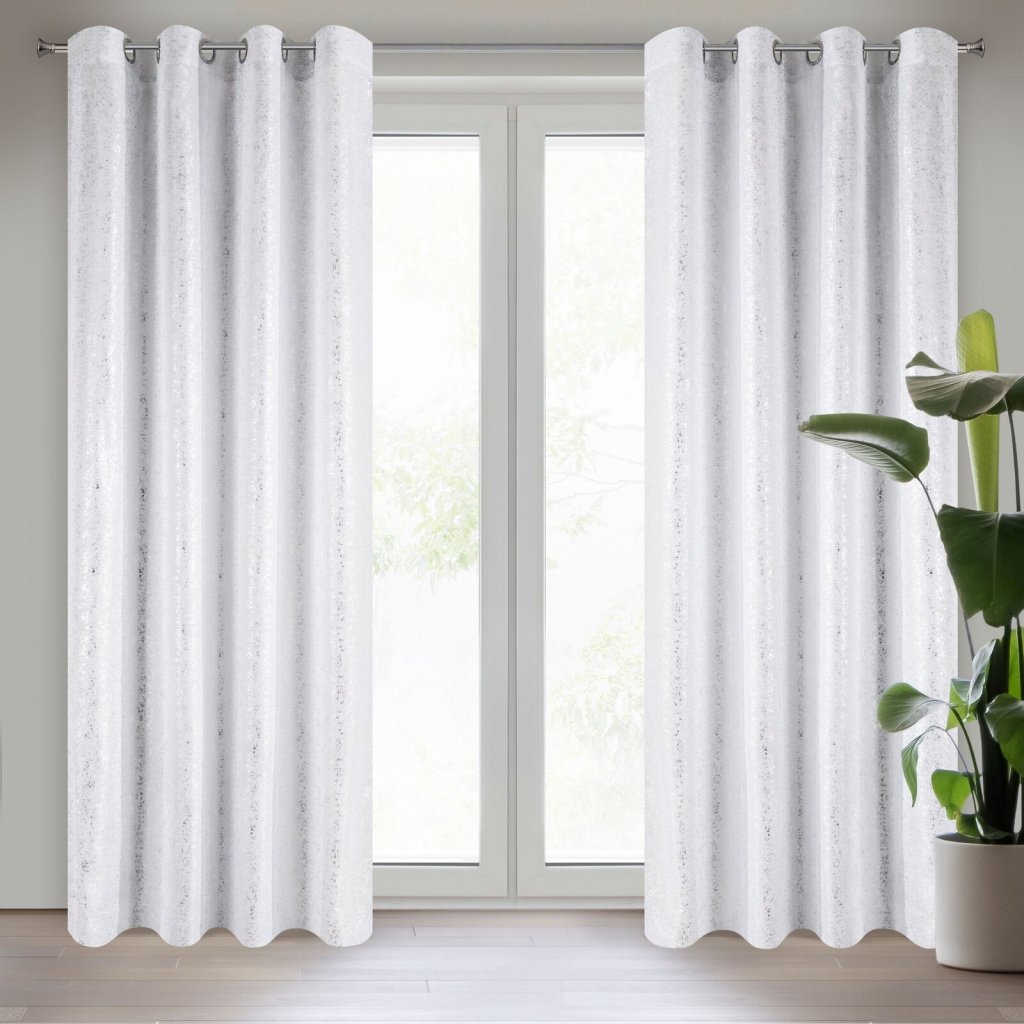 Dekorativní záclona v bílé barvě s jemným stříbrným potiskem. Šířka: 140 cm, délka: 250 cm, barva: bílá, hmotnost: 70 GSM, složení: 100 % polyesterDoplňkové parametry