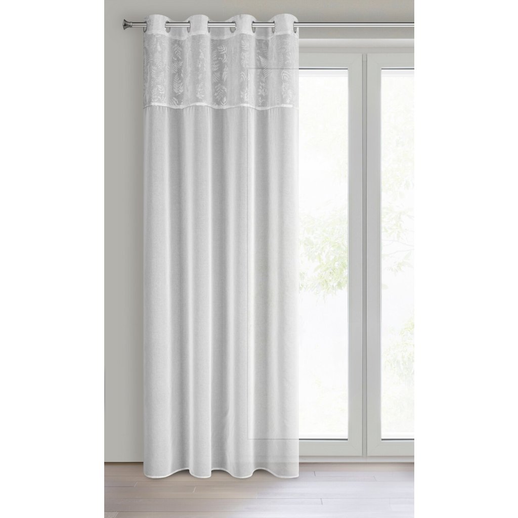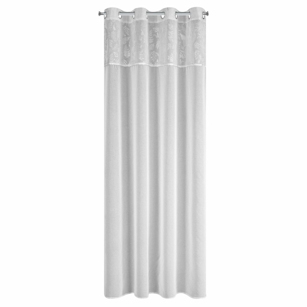 Záclona se stříbrným potiskem, šířka: 140 cm, délka: 250 cm, hmotnost: 80 GSM, barva: bílá, složení: 100% polyester.Doplňkové parametry