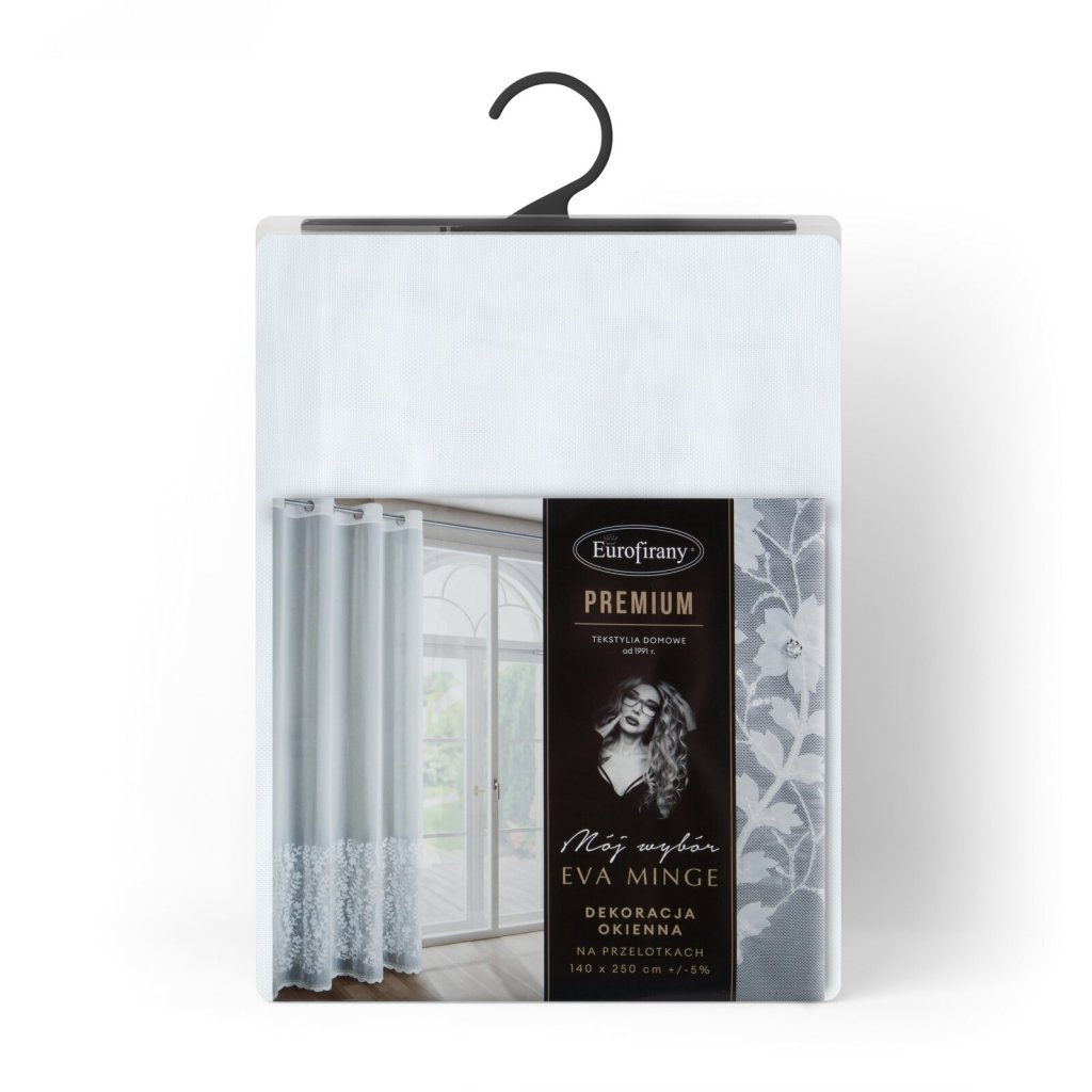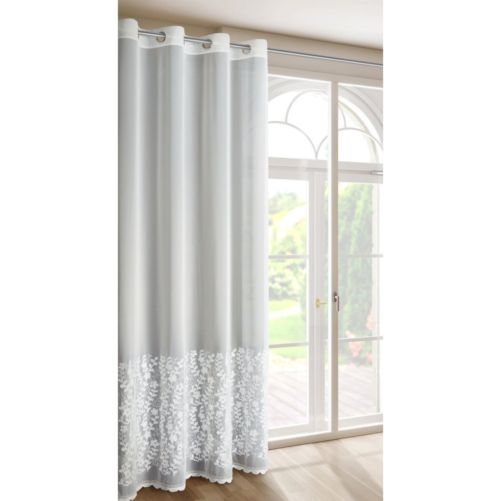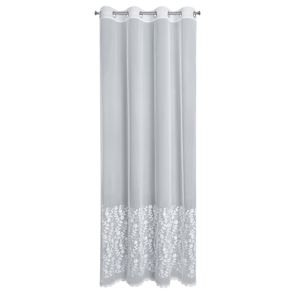 Hotová záclona INGA z kolekce Eva Minge vyrobená z lehké a vzdušné látky je jedinečným dekorativním prvkem, který spojuje moderní styl s elegancí. Ozdobený pás s květinovými aplikacemi dodává interiéru originalitu a jemnou hru textur, protože do místnosti vnáší přírodní motiv. Šířka: 140 cm, délka: 250 cm, barva: bílá, složení: 100% polyester.Doplňkové parametry