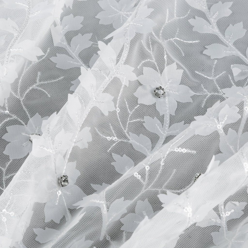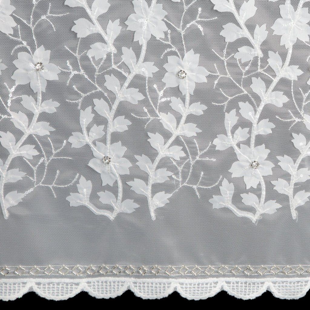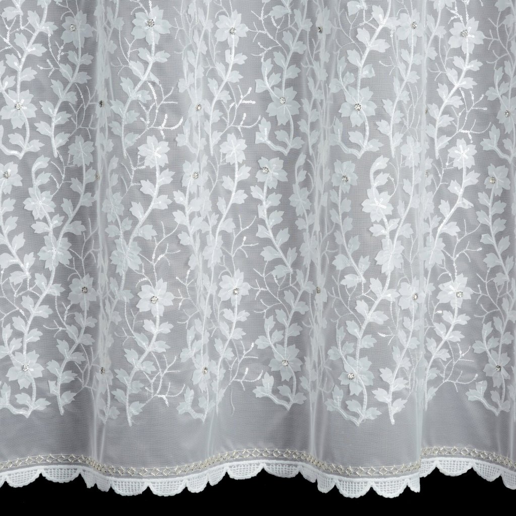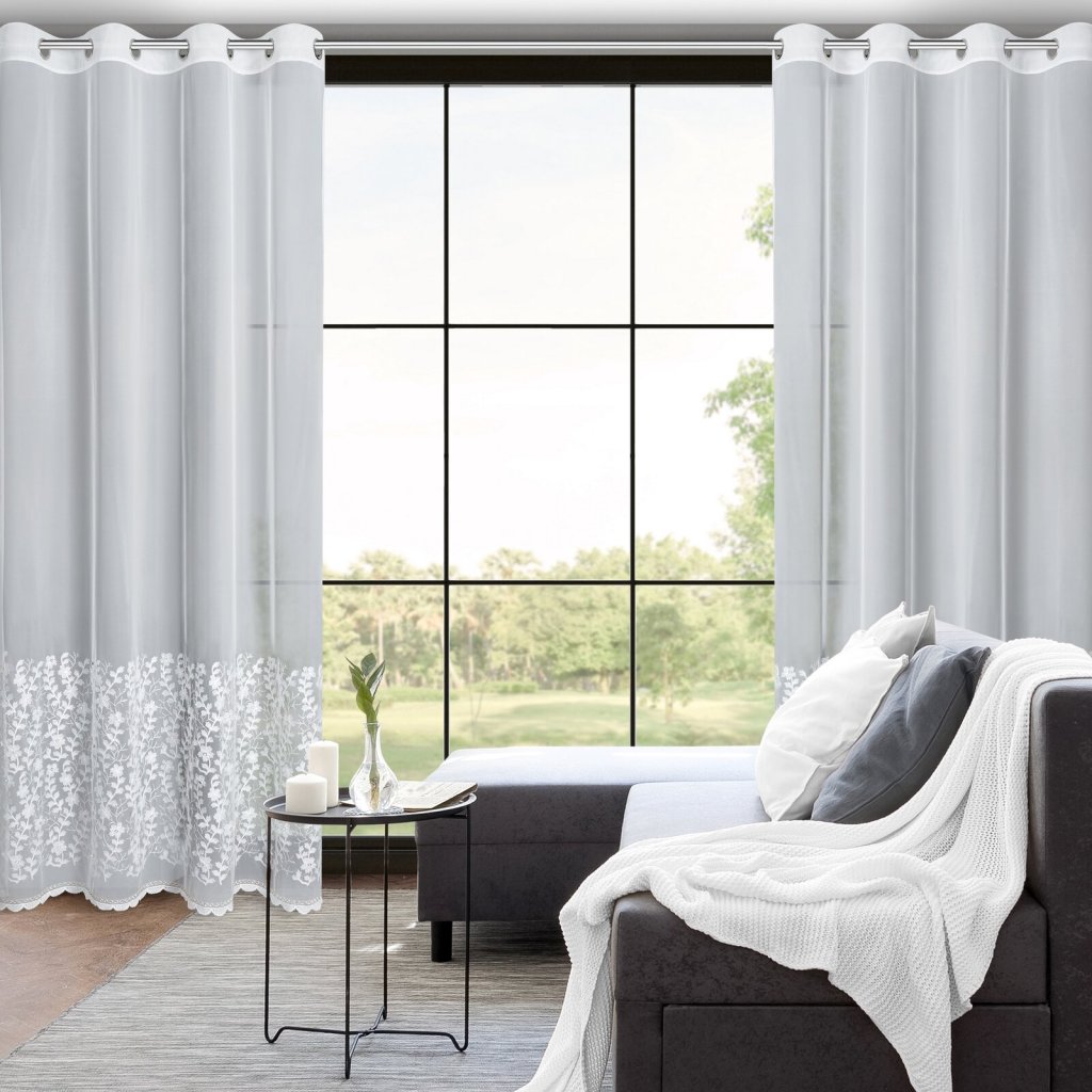 Hotová záclona INGA z kolekce Eva Minge vyrobená z lehké a vzdušné látky je jedinečným dekorativním prvkem, který spojuje moderní styl s elegancí. Ozdobený pás s květinovými aplikacemi dodává interiéru originalitu a jemnou hru textur, protože do místnosti vnáší přírodní motiv. Šířka: 140 cm, délka: 250 cm, barva: bílá, složení: 100% polyester.Doplňkové parametry