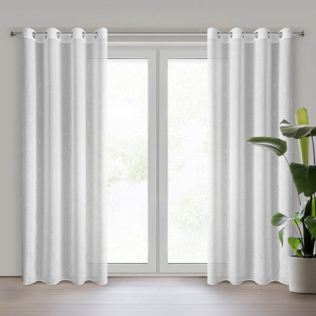 Záclona s lesklým potiskem, šířka: 140 cm, délka: 270 cm, barva: bílá, hmotnost: 60 GSM, složení: 100% polyester.Doplňkové parametry