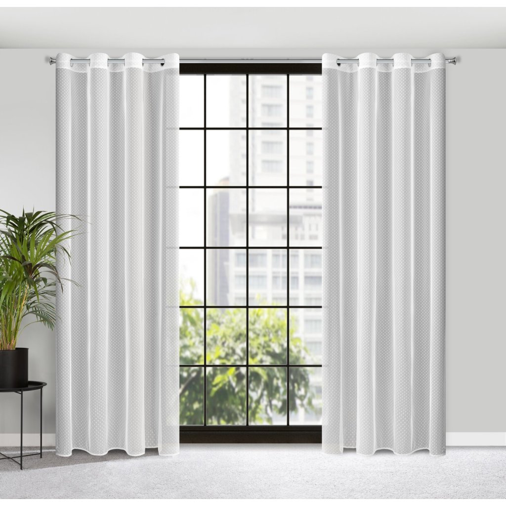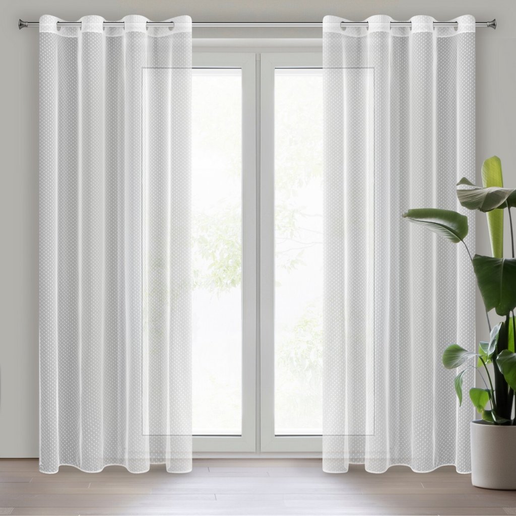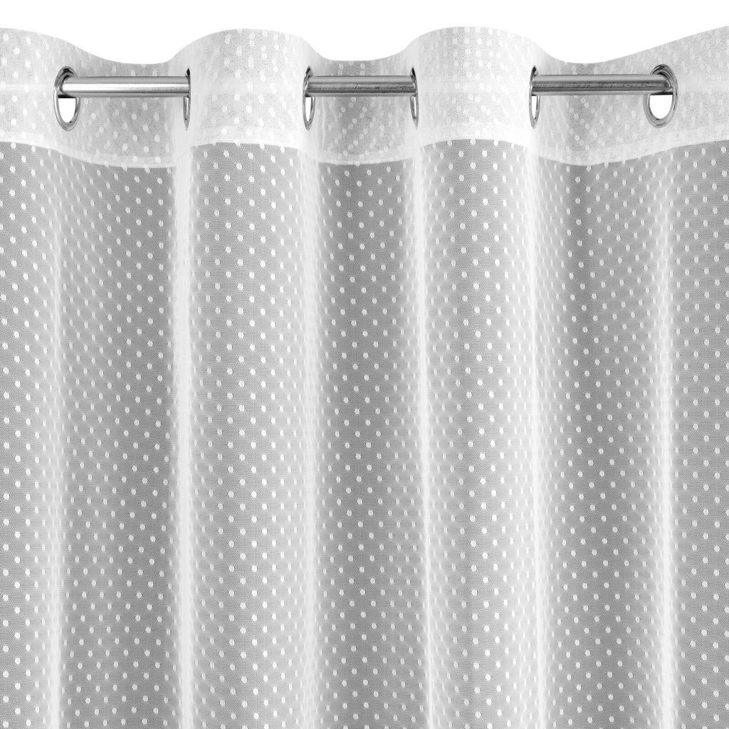 Hotová záclona zdobená tečkami, šířka: 140 cm, délka: 250 cm, barva: bílá, hmotnost: 40 GSM, složení: 100% polyester.Doplňkové parametry