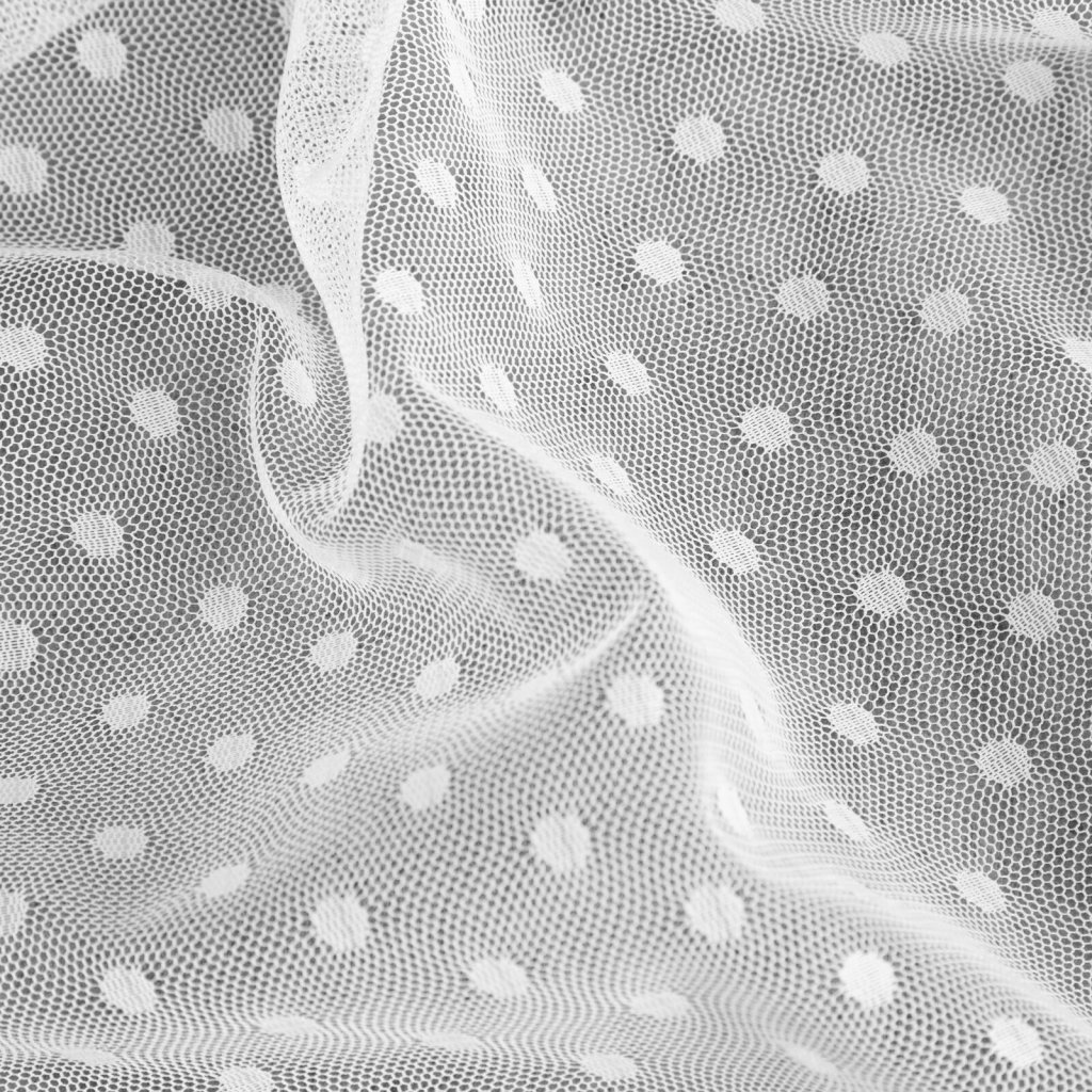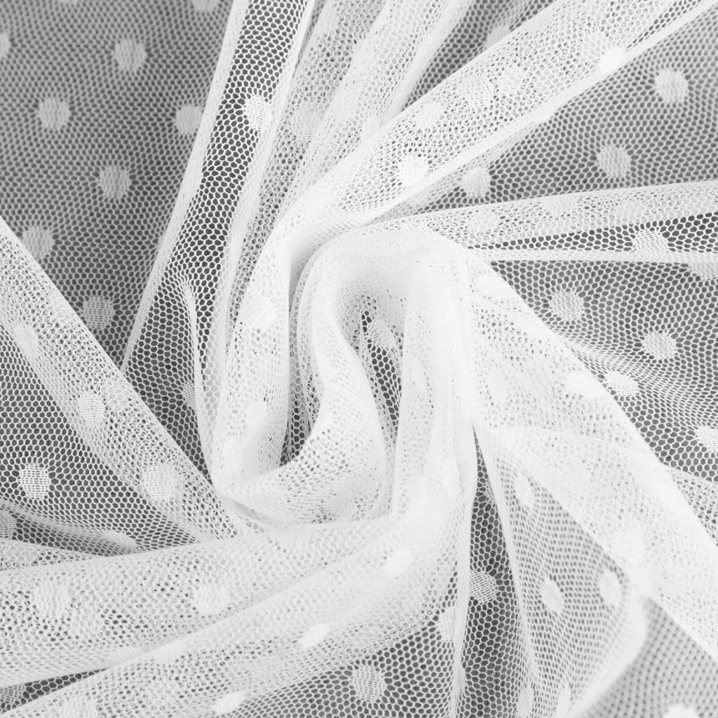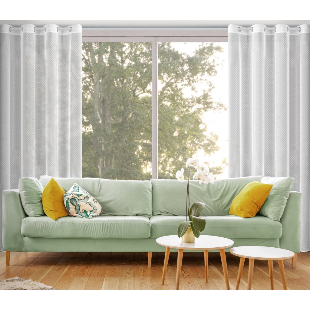 Hotová záclona zdobená tečkami, šířka: 140 cm, délka: 250 cm, barva: bílá, hmotnost: 40 GSM, složení: 100% polyester.Doplňkové parametry