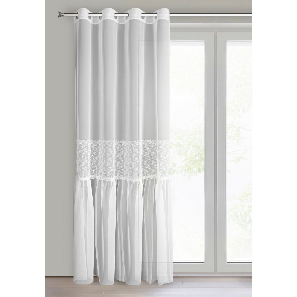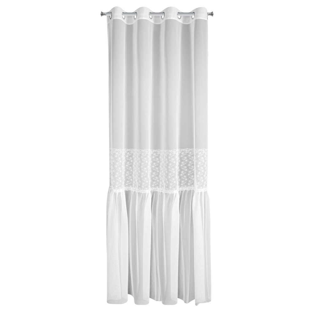 Hotová záclona zdobená květinovou výšivkou z lesklé nitě, šířka: 140 cm, délka: 250 cm, barva: bílá, hmotnost: 70 GSM.Doplňkové parametry