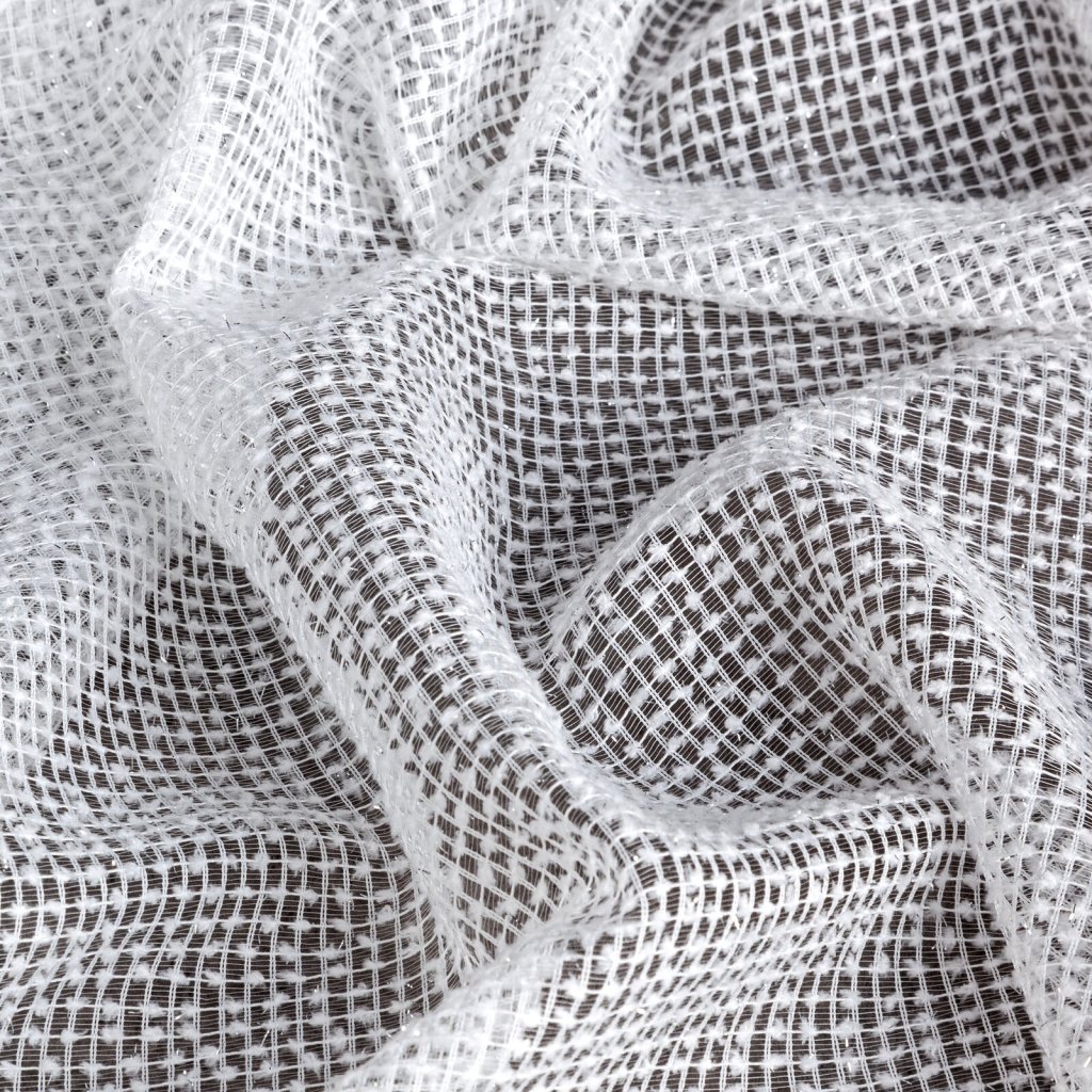 Záclona se síťovanou strukturou v kombinaci s buclé, zdobený stříbrnou nití, šířka: 140 cm, délka: 260 cm, barva: bílá, hmotnost: 90 GSM, složení: 100% polyester.Doplňkové parametry