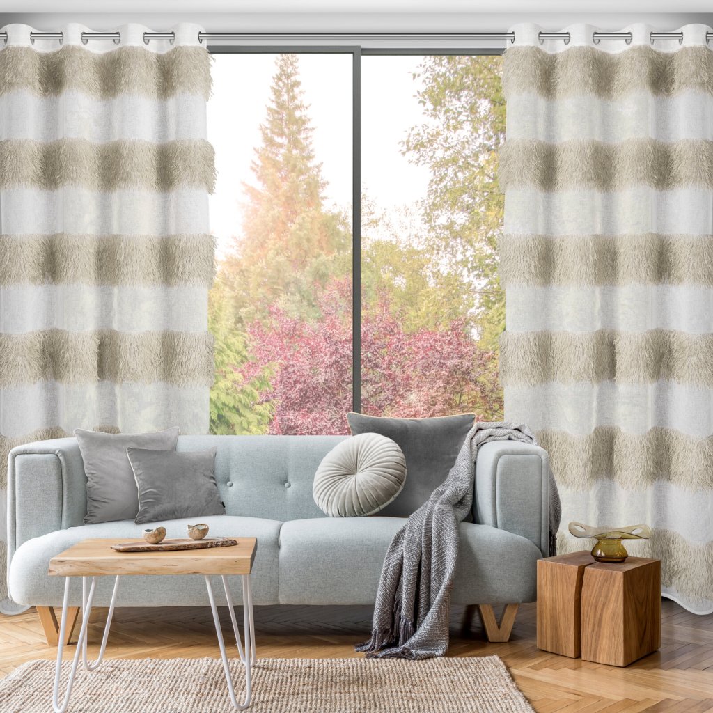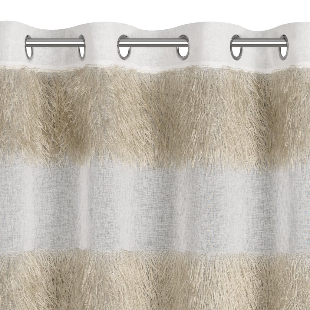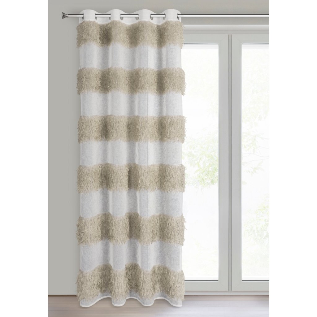 Hotová záclona s chlupatou aplikací, šířka: 140 cm, délka: 250 cm, barva: bílá a béžová, složení: 100% polyester.Doplňkové parametry