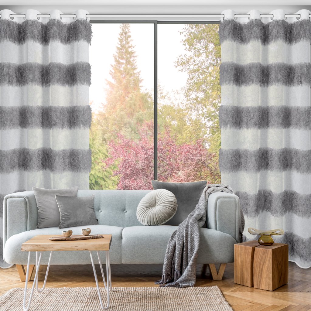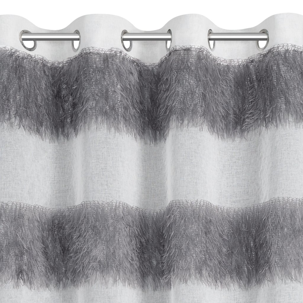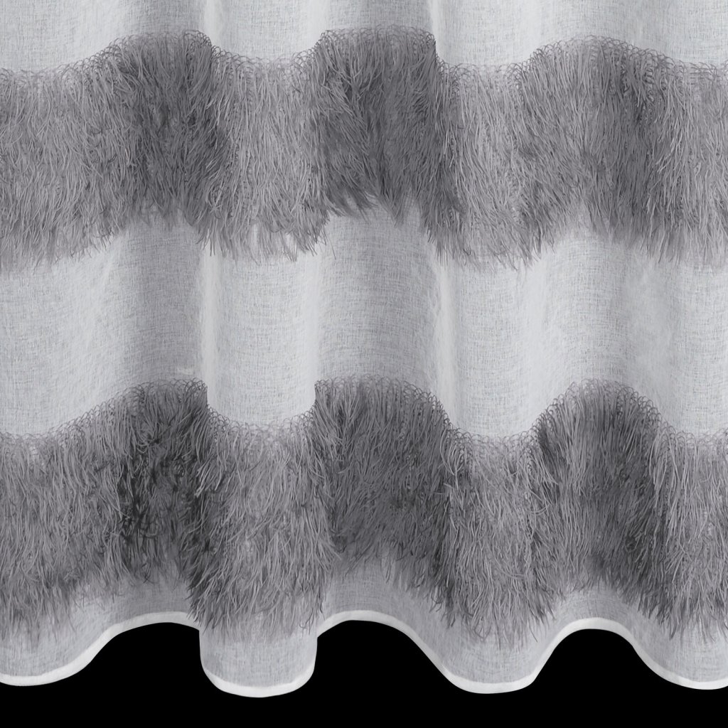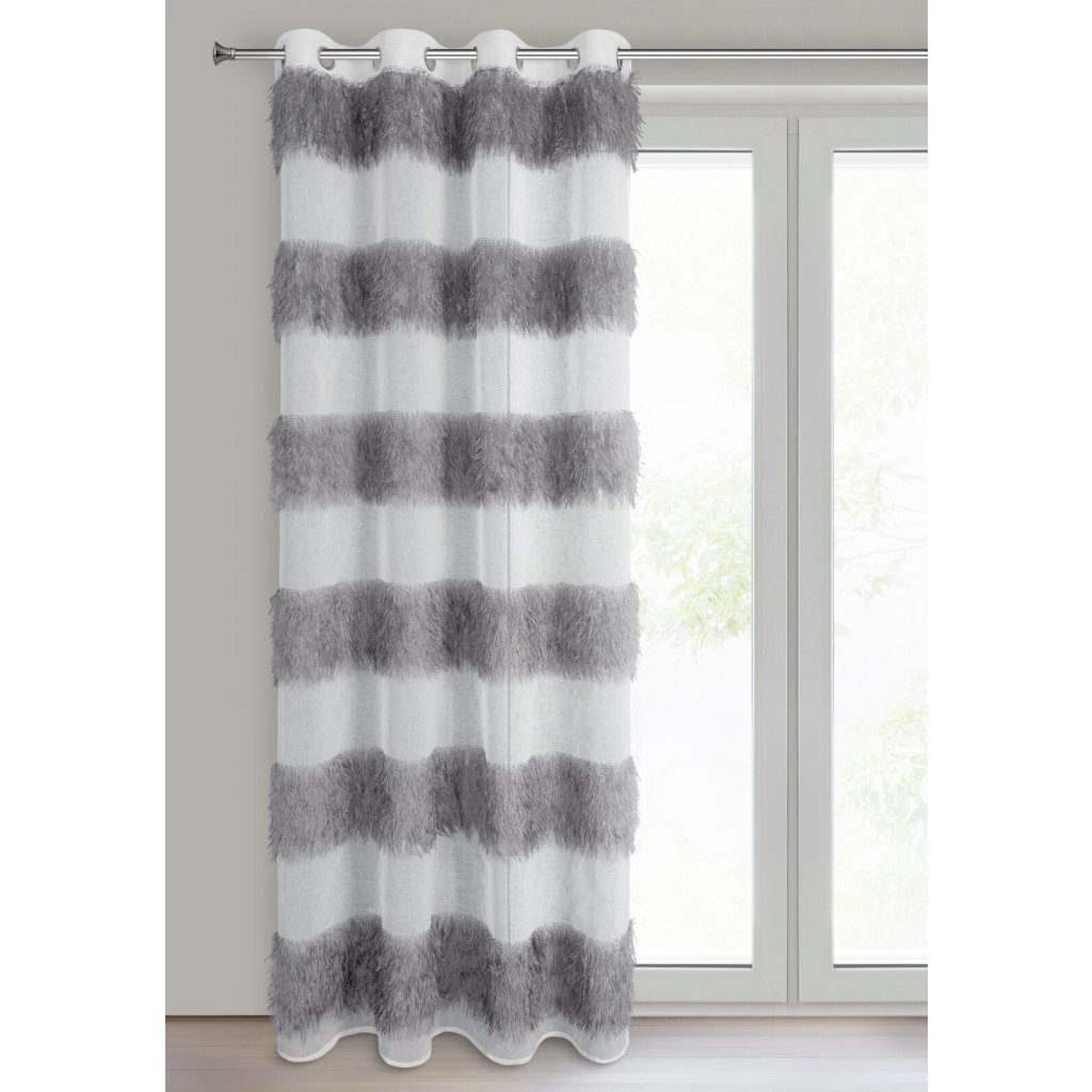Hotová záclona s chlupatou aplikací, šířka: 140 cm, délka: 250 cm, barva: bílá a stříbrná, složení: 100% polyester.Doplňkové parametry