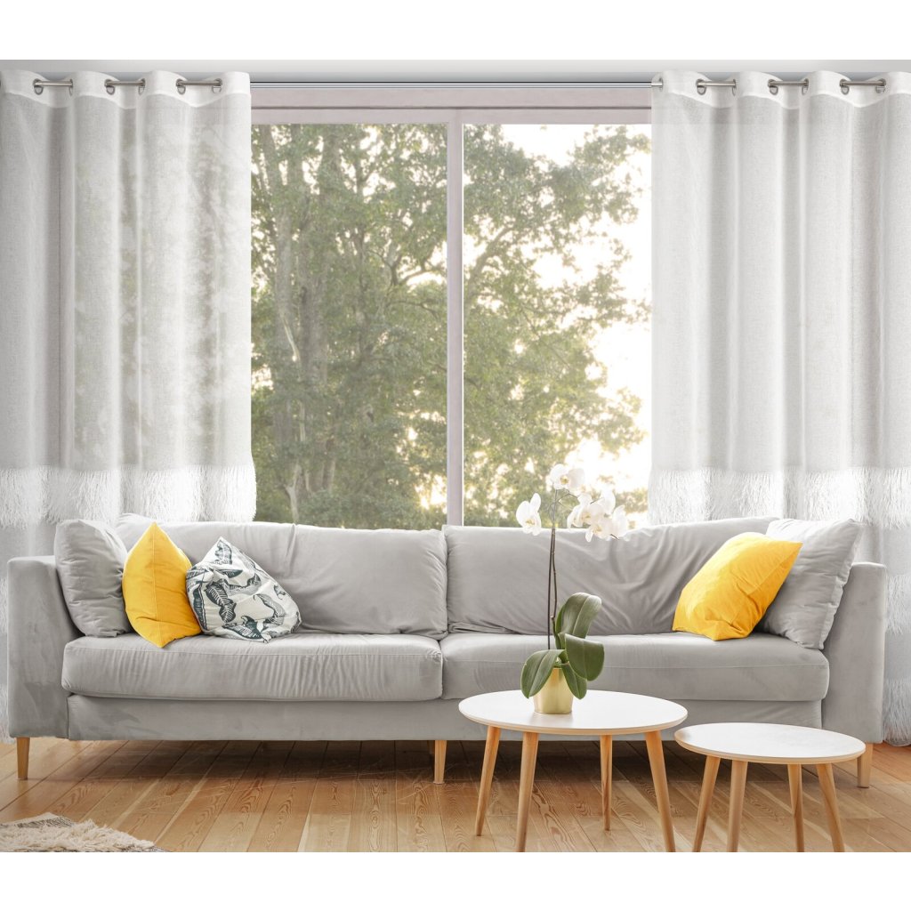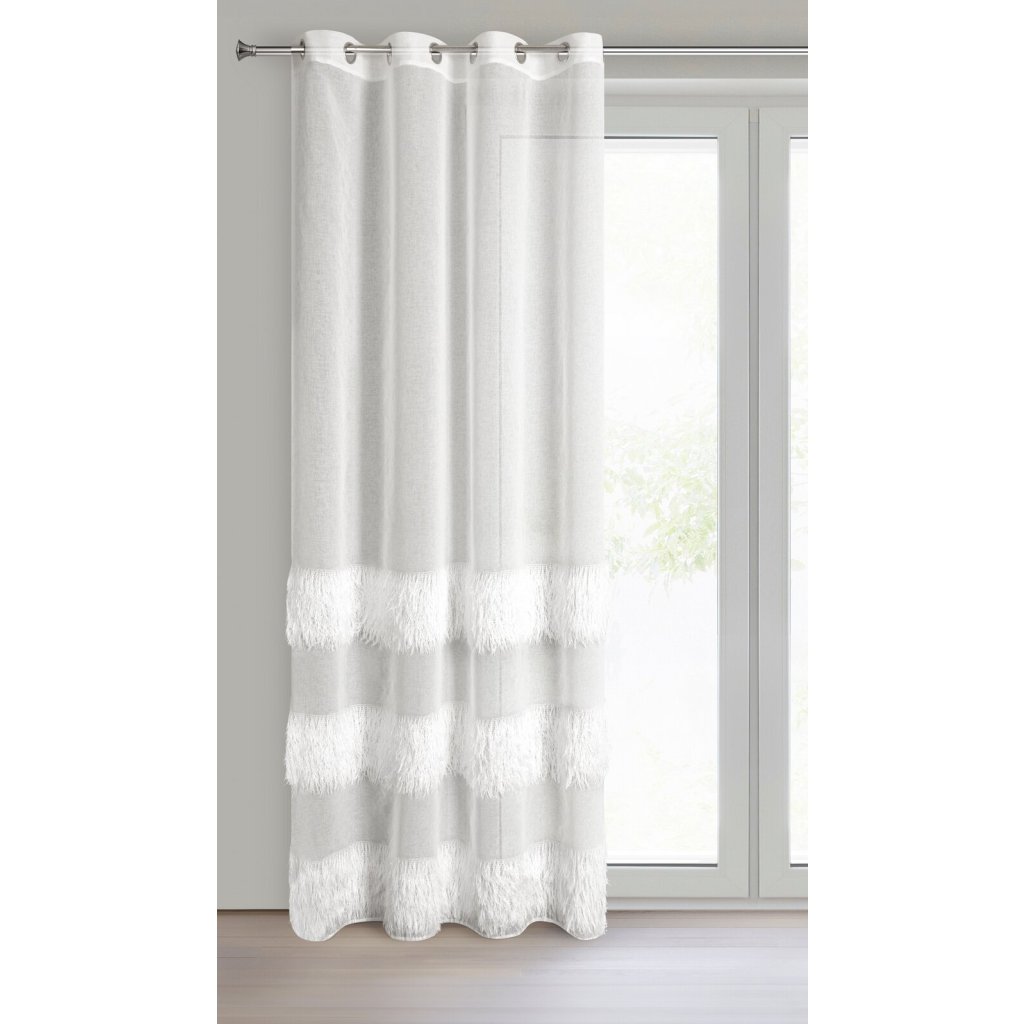 Hotová záclona s chlupatou aplikací, šířka: 140 cm, délka: 250 cm, barva: krémová, složení: 100% polyester.Doplňkové parametry