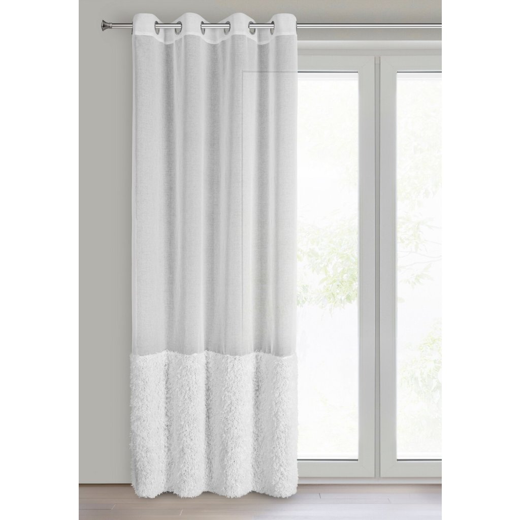 Hotová záclona s chlupatou aplikací, šířka: 140 cm, délka: 250 cm, barva: bílá, hmotnost: 70 GSM, složení: 100% polyester.Doplňkové parametry