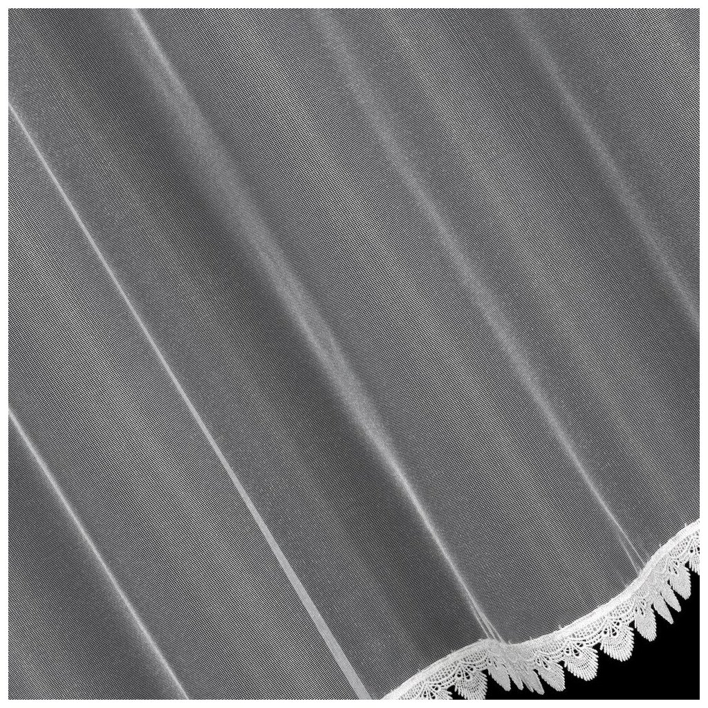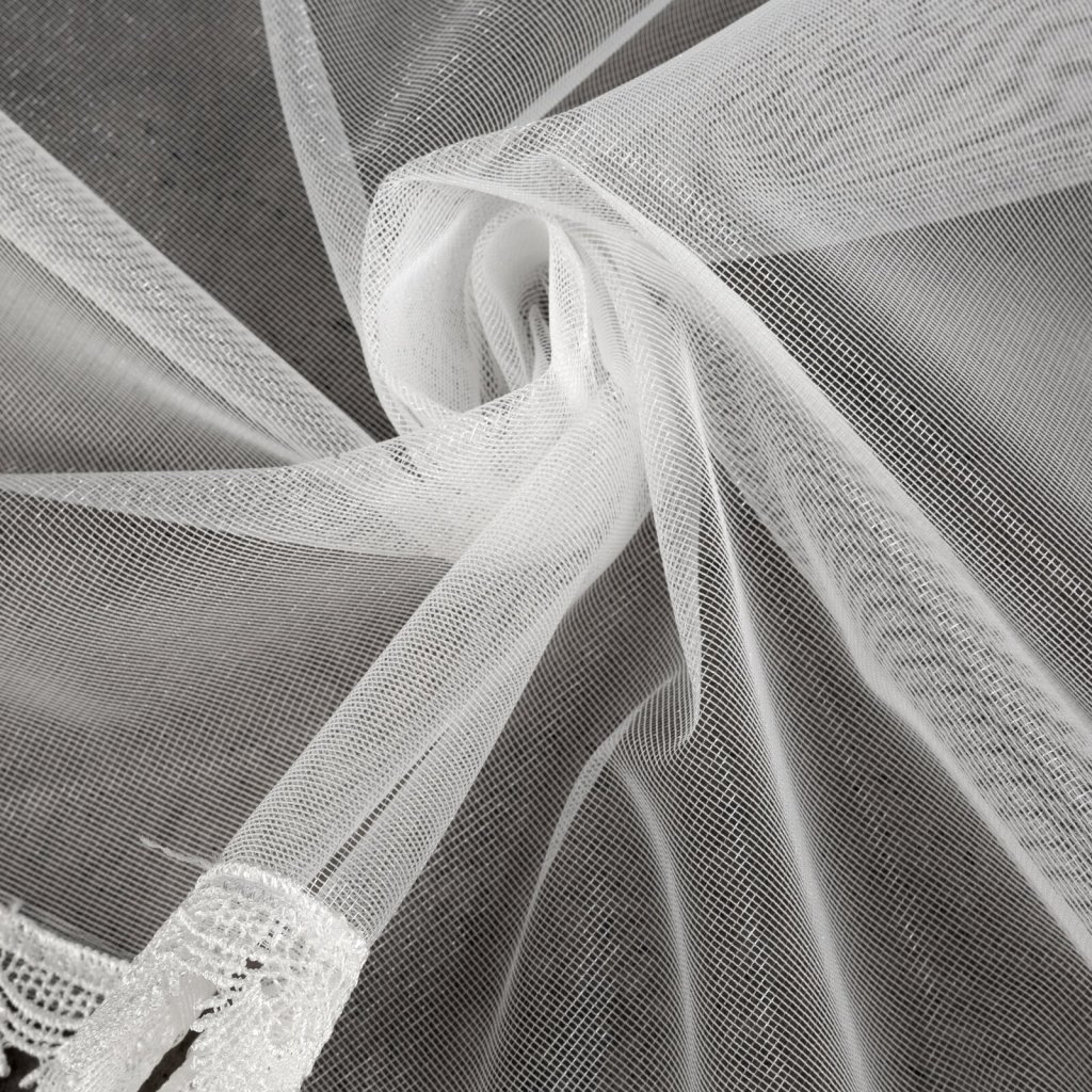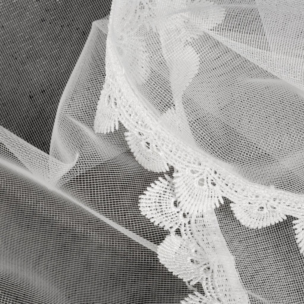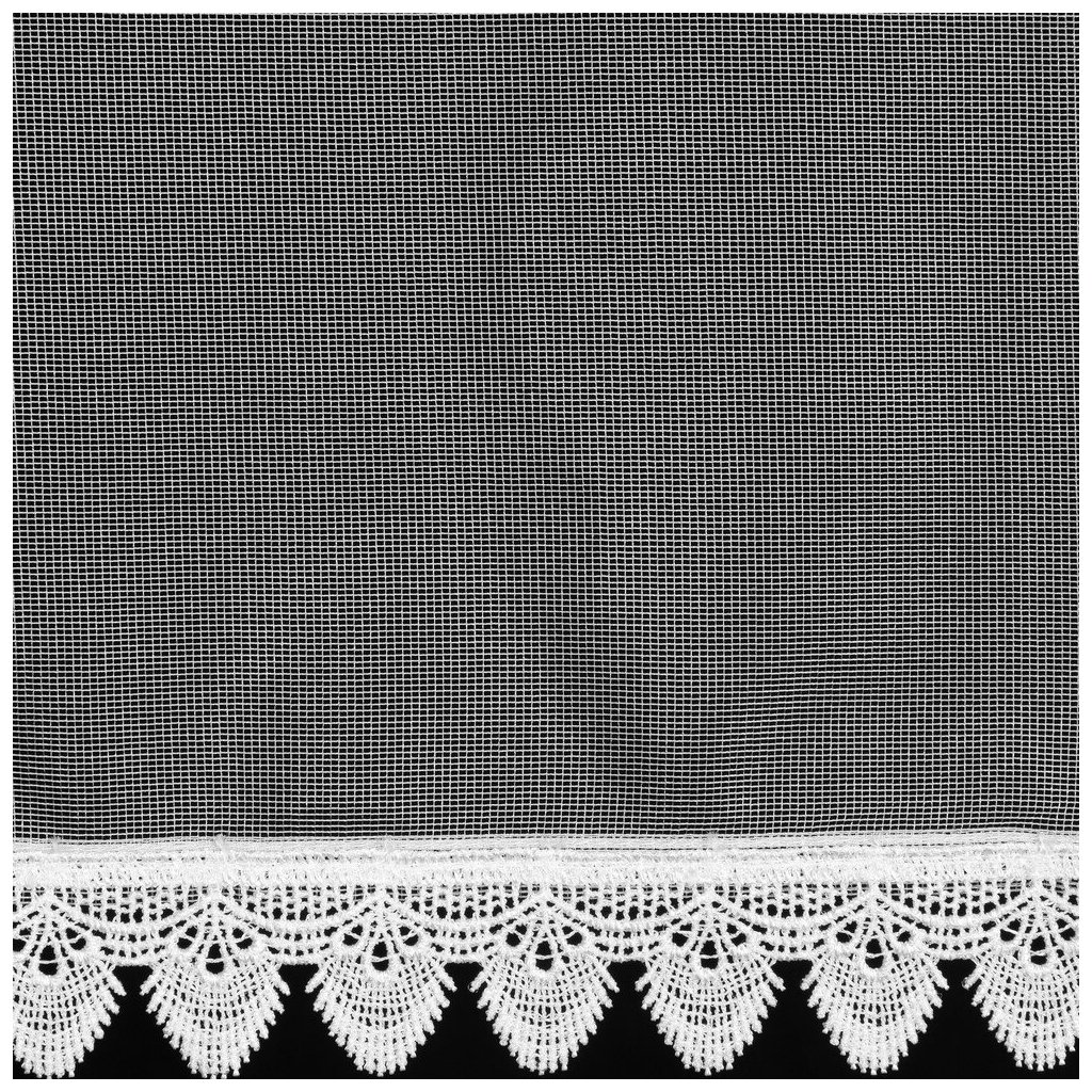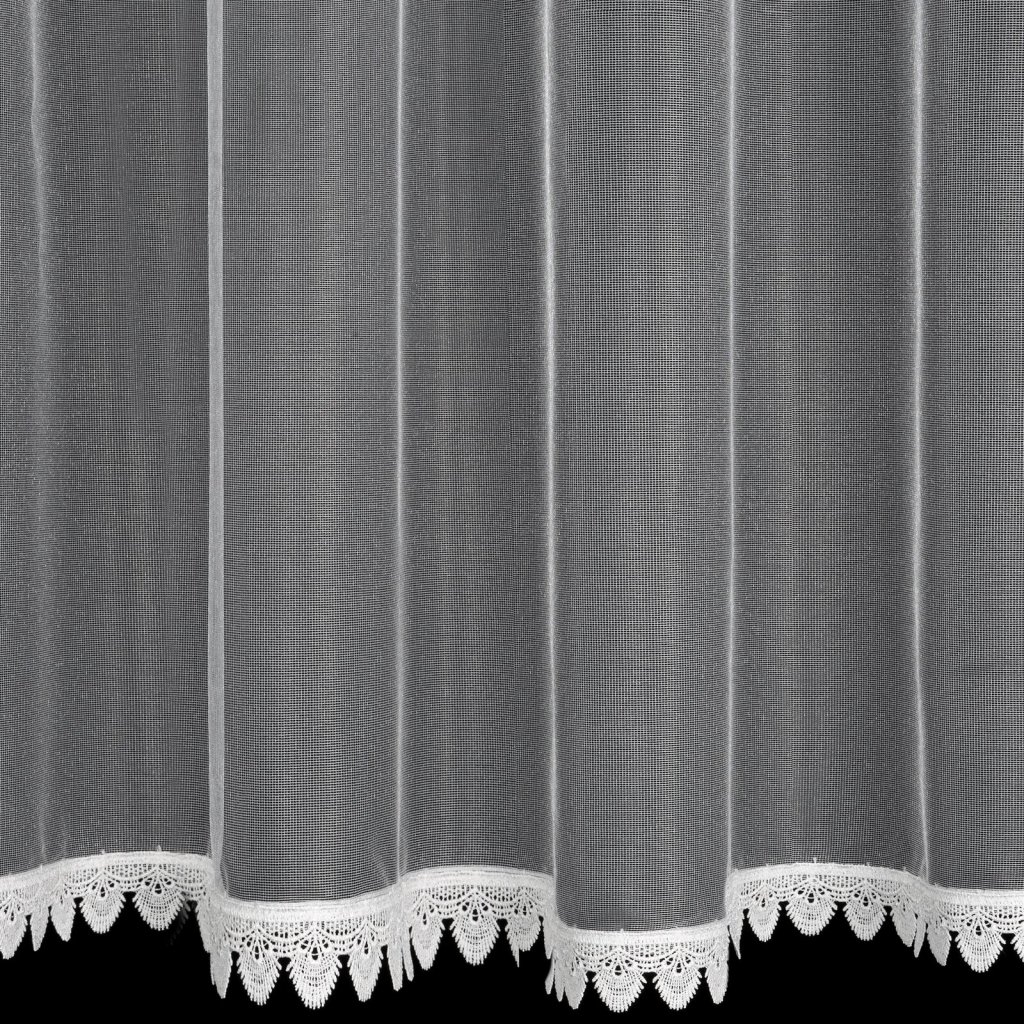 Záclona s ozdobnou krajkou. Šířka: 300 cm, délka: 100 cm, barva: bílá, hmotnost: 40 GSM, složení: 100% polyester