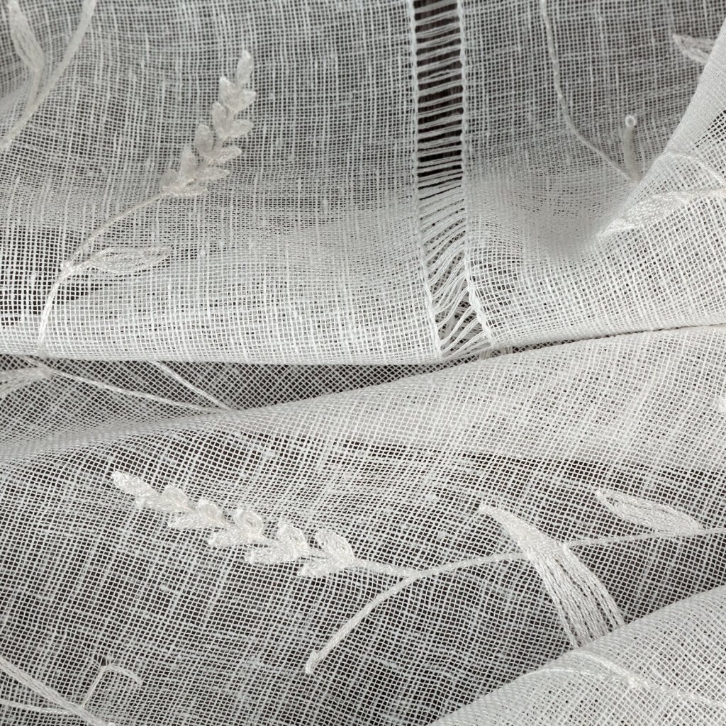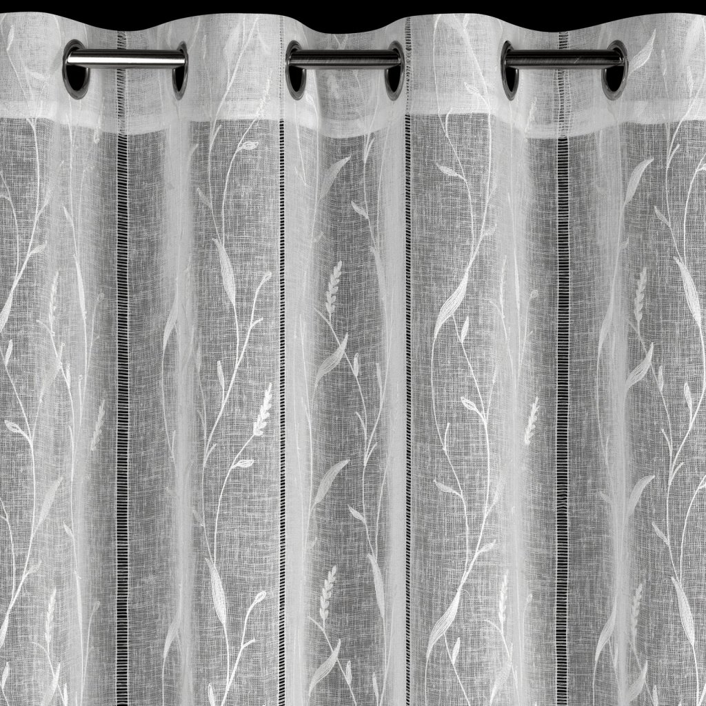 Záclona MELODY kombinuje přírodní texturu matné gázy s jemným, prolamovaným vzorem horizontálních pruhů, čímž dodává nádech lehkosti a půvabu. Elegantní výšivka s motivem ozdobného stébla trávy dotváří kouzlo a přináší do interiéru pocit klidu a harmonie inspirované přírodou. Šířka: 140 cm, délka: 250 cm, barva: bílá, hmotnost: 148 GSM, složení: 100% polyester.Doplňkové parametry