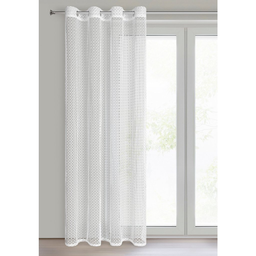 Hotová záclona se síťovou strukturou, šířka: 140 cm, délka: 250 cm, barva: bílá, gramáž: 120 GSM, složení: 100% polyester.Doplňkové parametry