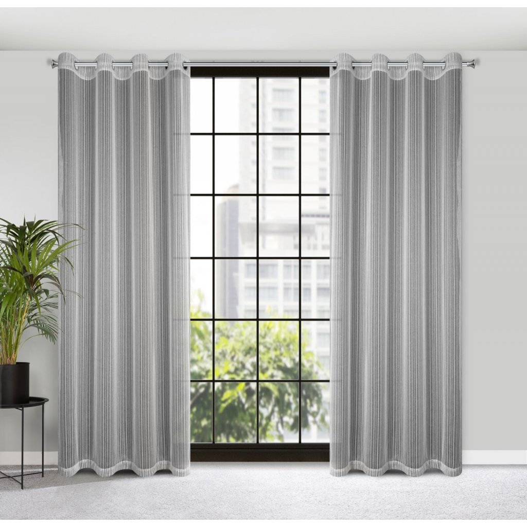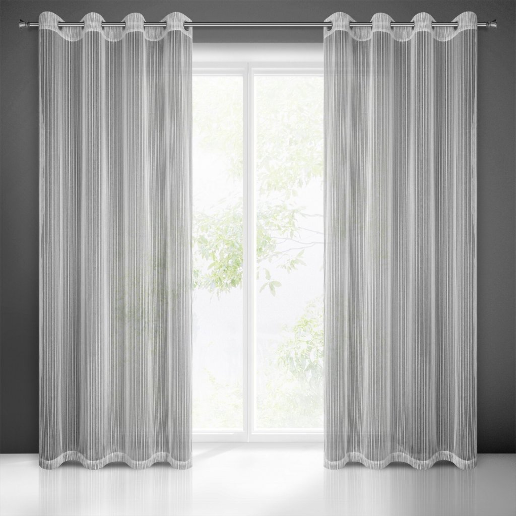 Hotová záclona s lesklou nití šířka: 140 cm, délka: 250 cm, barva: stříbrná, hmotnost: 55 GSM, složení: 100% polyester.Doplňkové parametry