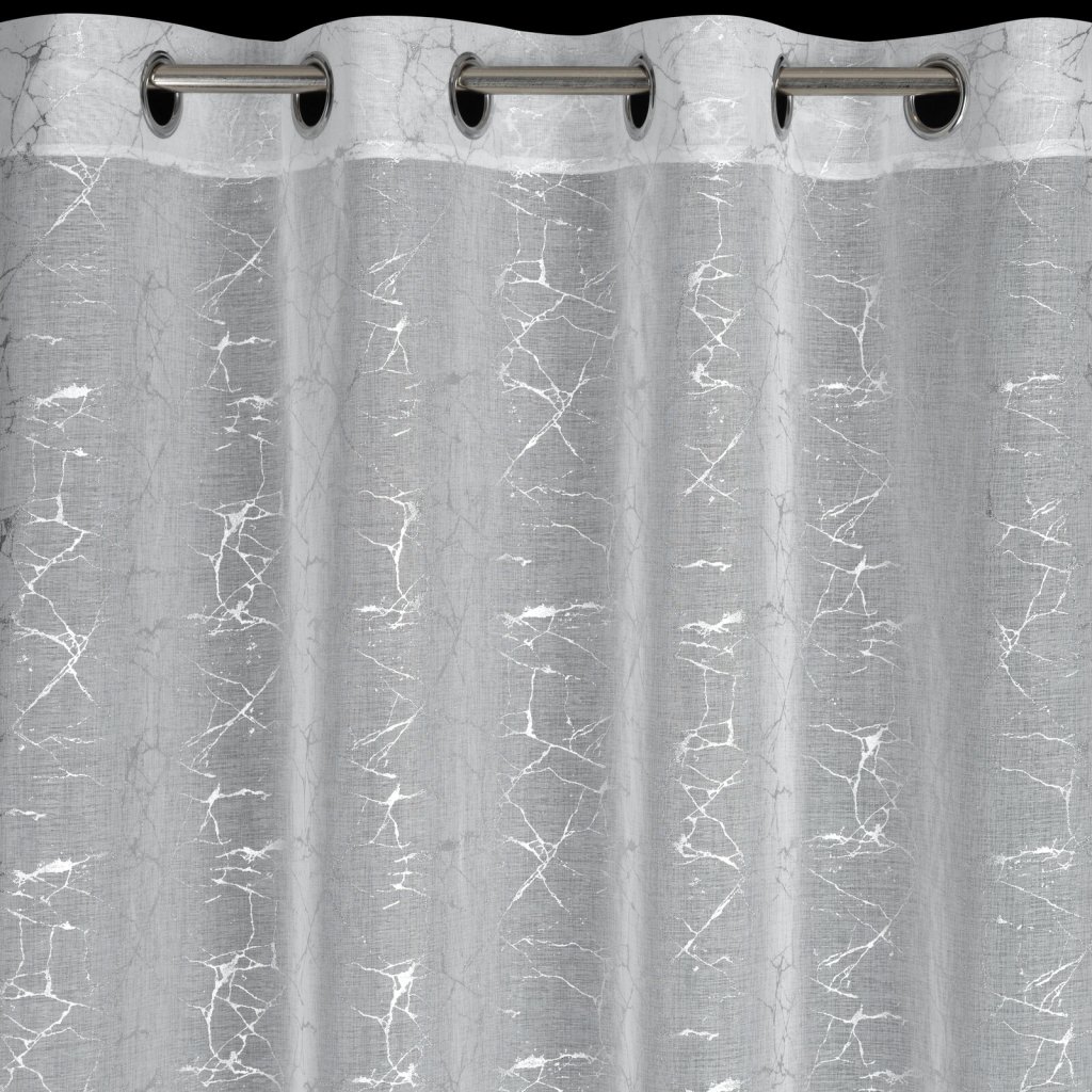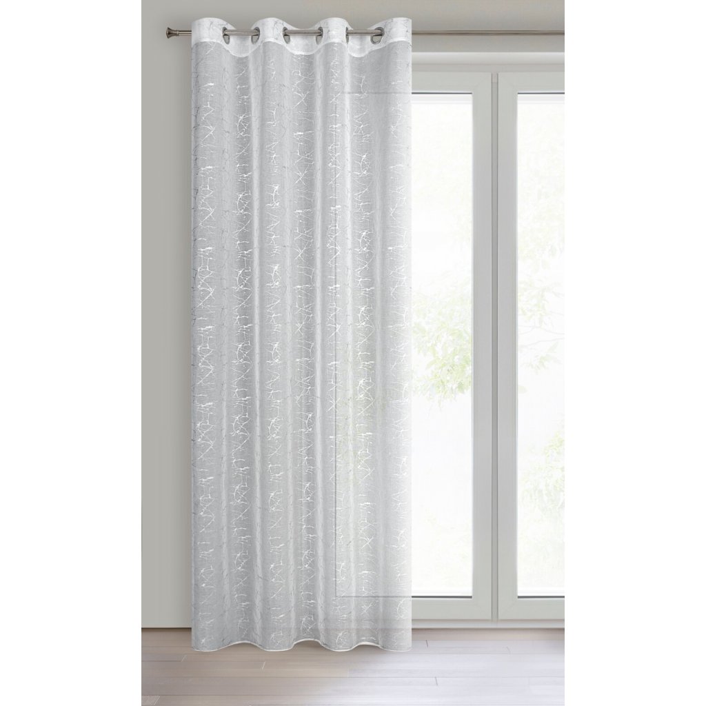 Hotová záclona se stříbrným potiskem, šířka: 140 cm, délka: 250 cm, barva: bílá, gramáž: 80 GSM, složení: 100% polyester.Doplňkové parametry