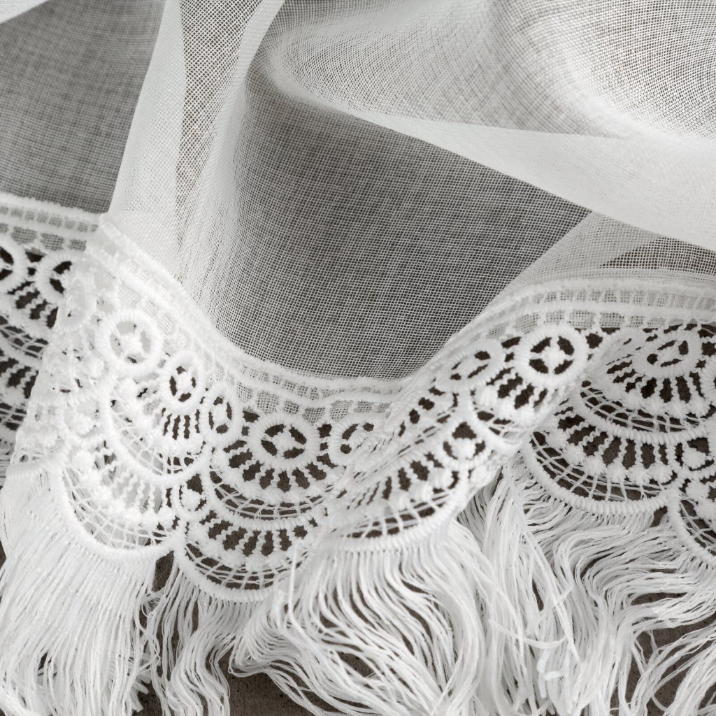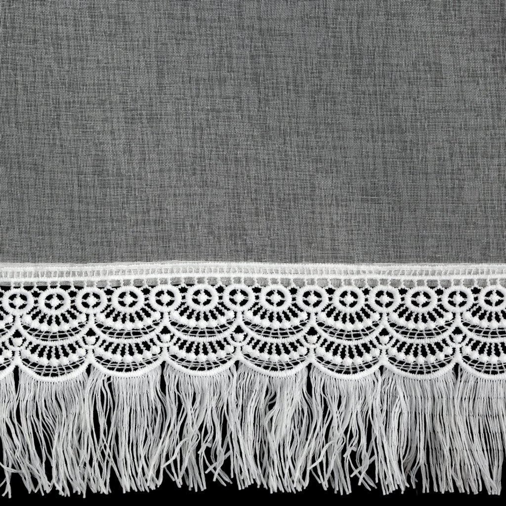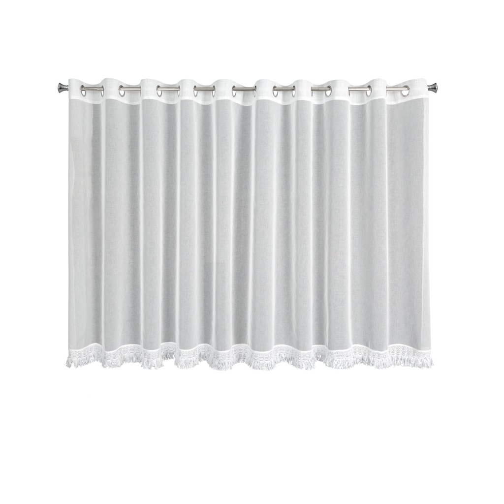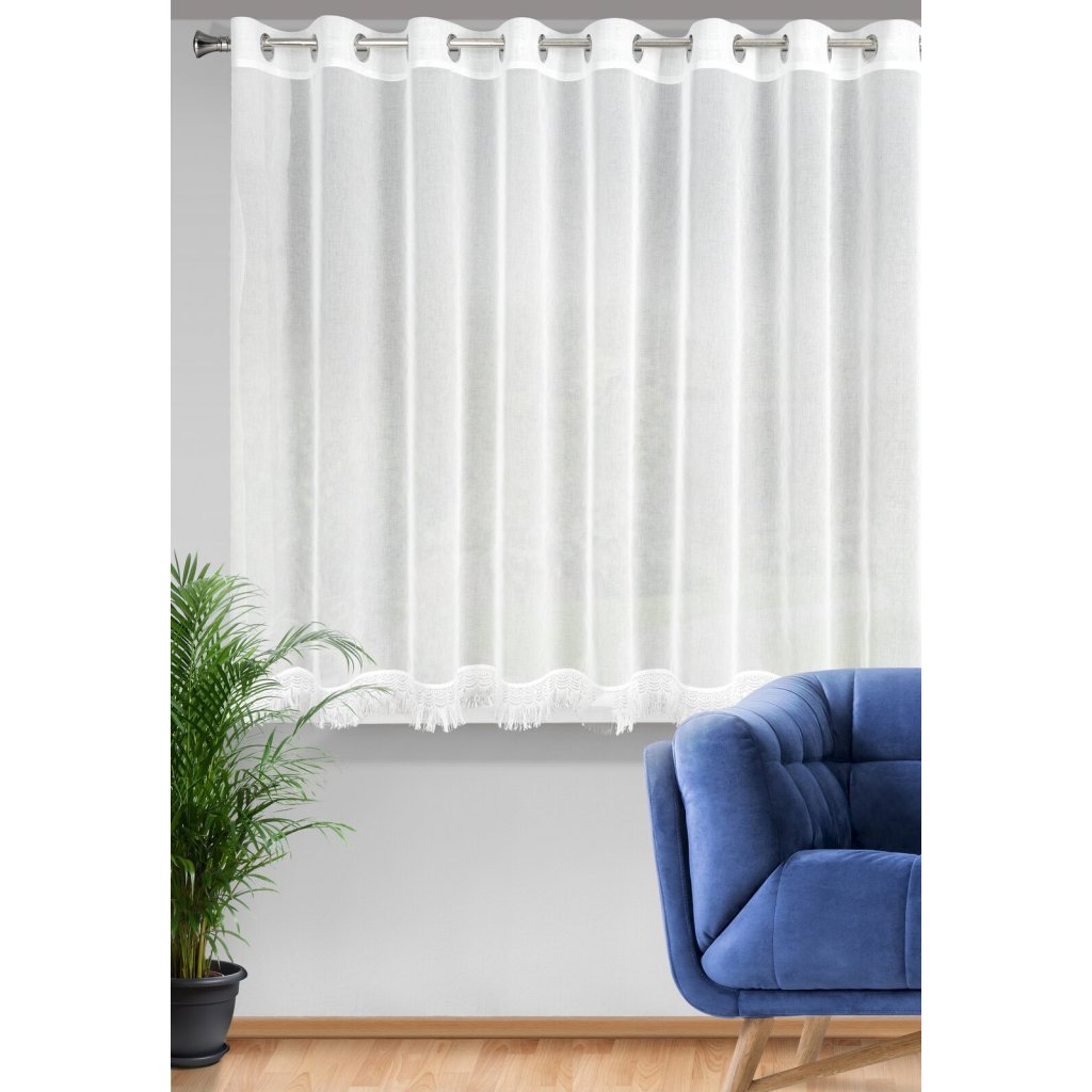 Hotová záclona s ozdobným lemem na spodní části, šířka: 350 cm, délka: 145 cm, barva: bílá, složení: 100% polyester.Doplňkové parametry