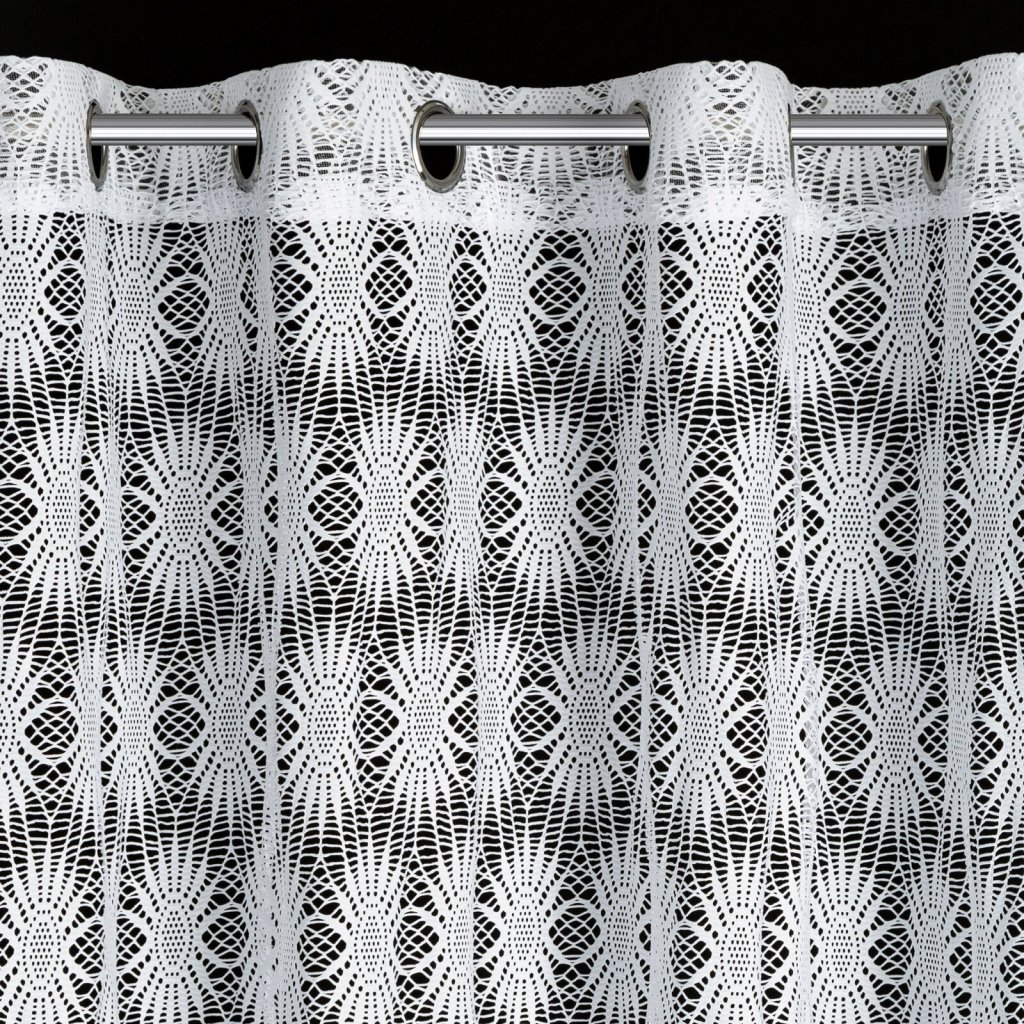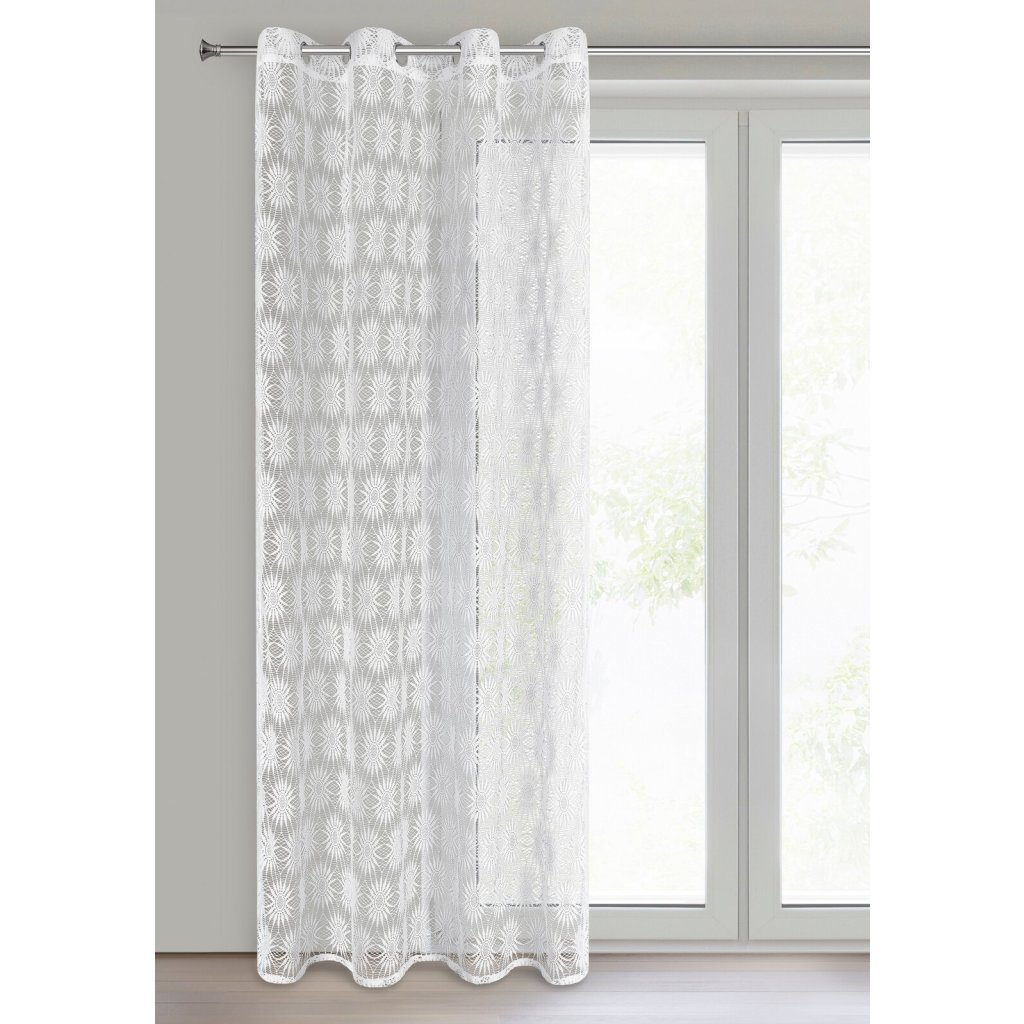 Hotová záclona se síťovanou strukturou, šířka: 140 cm, délka: 250 cm, barva: bílá, složení: 100% polyester.Doplňkové parametry