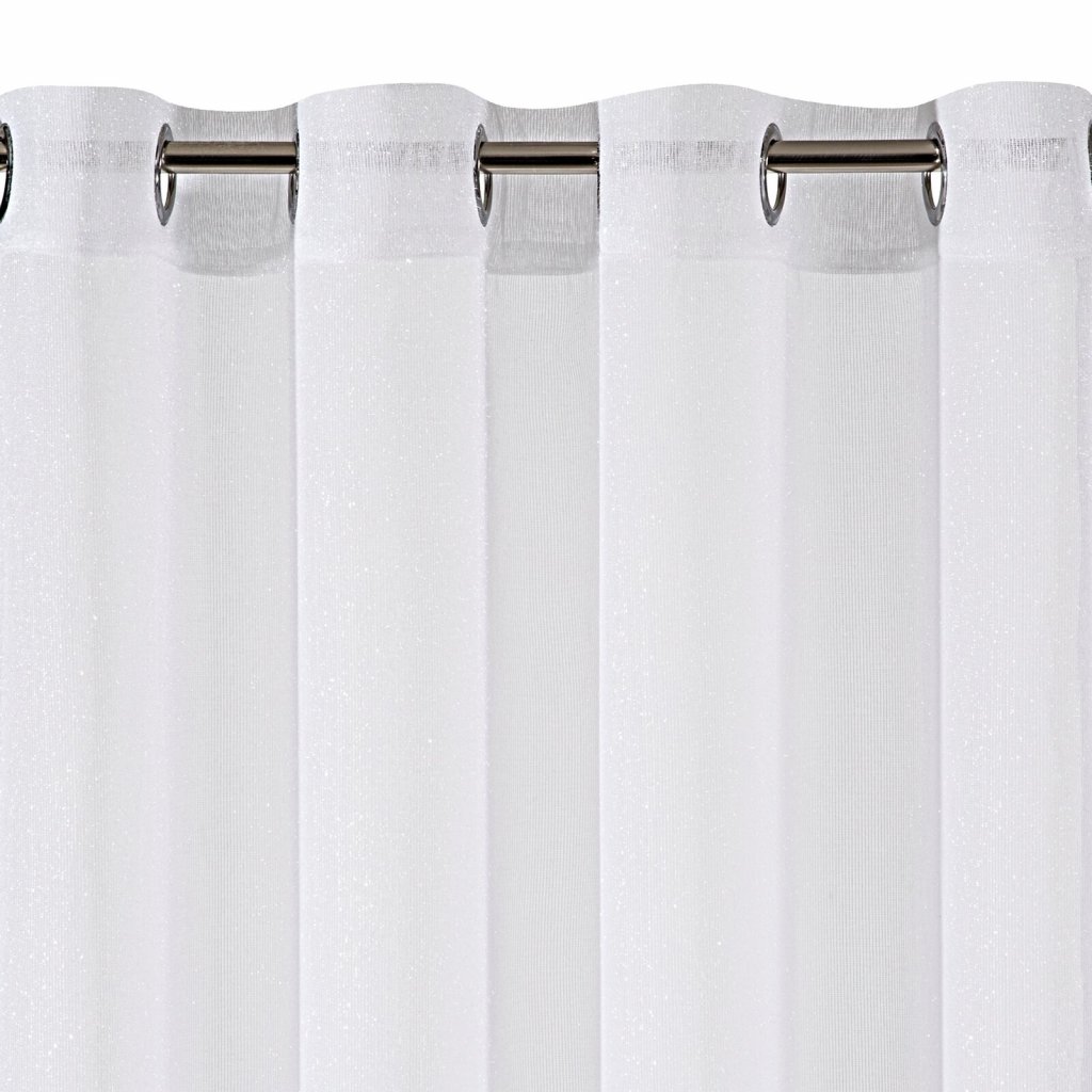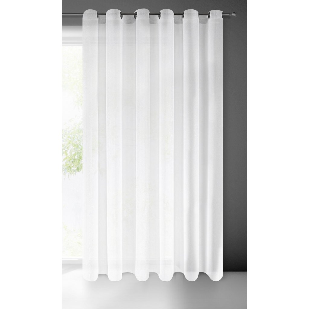 Jemná síťová záclona zdobená stříbrnou mohérovou nití. Šířka: 350 cm, délka: 250 cm, barva: bílá, hmotnost: 70 GSM, složení: 100 % polyesterDoplňkové parametry