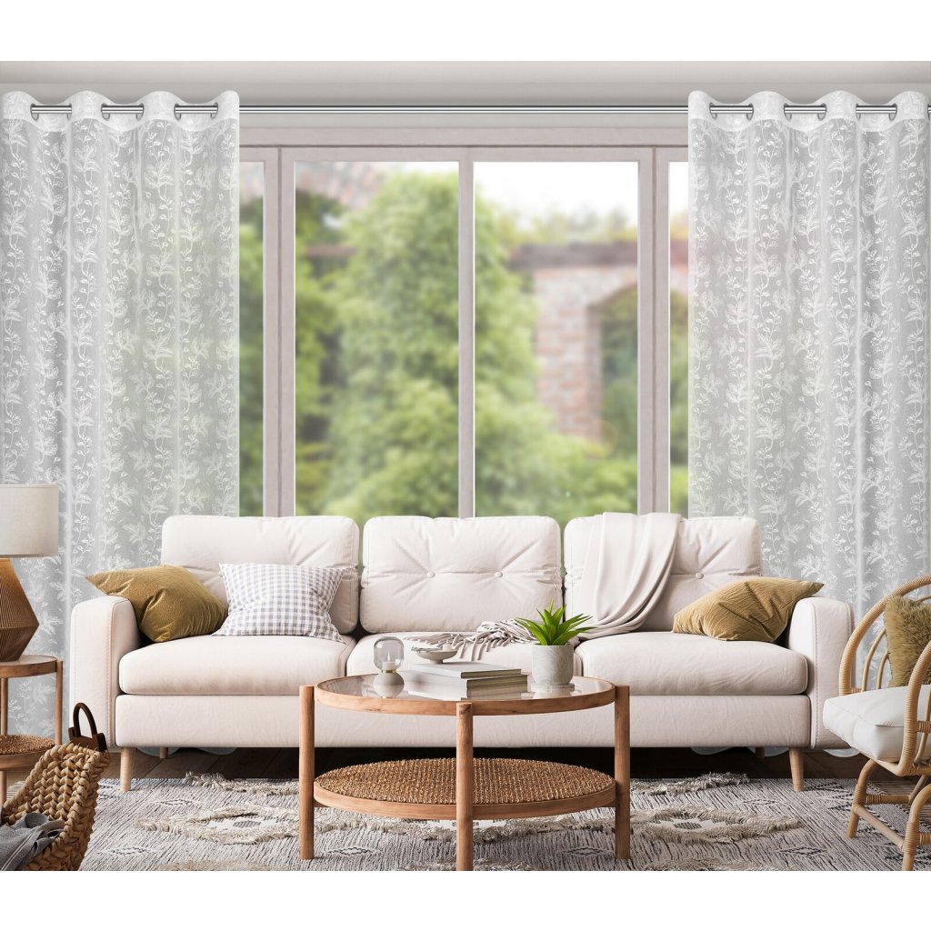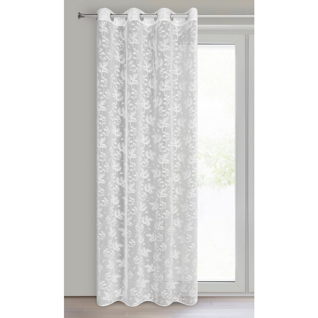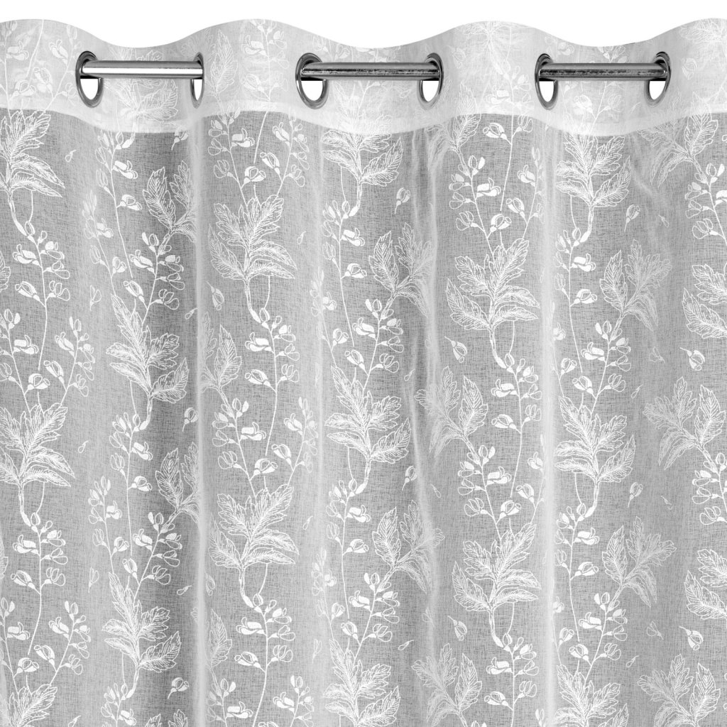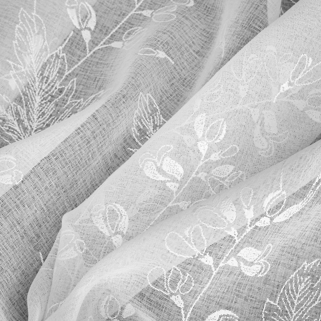 Hotová záclona zdobená pogumovaným potiskem, šířka: 140 cm, délka: 260 cm, barva: bílá, složení: 100% polyester.Doplňkové parametry