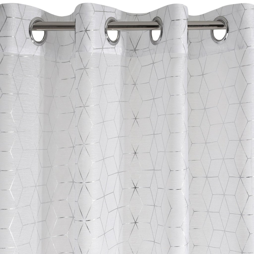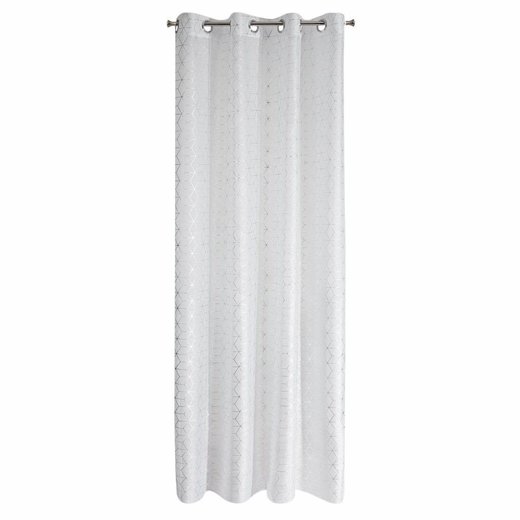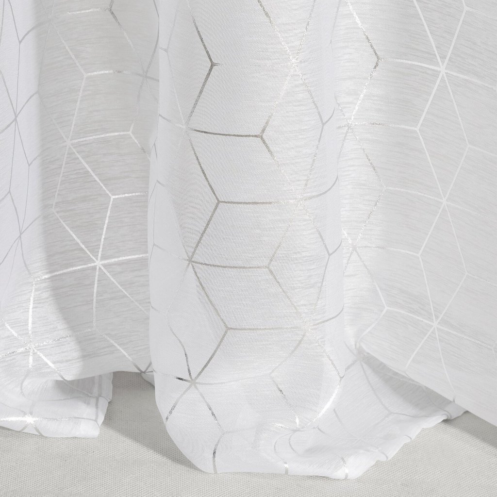 Vzdušná záclona s minimalistickým charakterem. Bílá dekorace se stříbrným potiskem s geometrickým vzorem kosočtverců. Šířka: 140 cm, délka: 250 cm, barva: bílá, hmotnost: 50 GSM, složení: 100 % polyesterDoplňkové parametry
