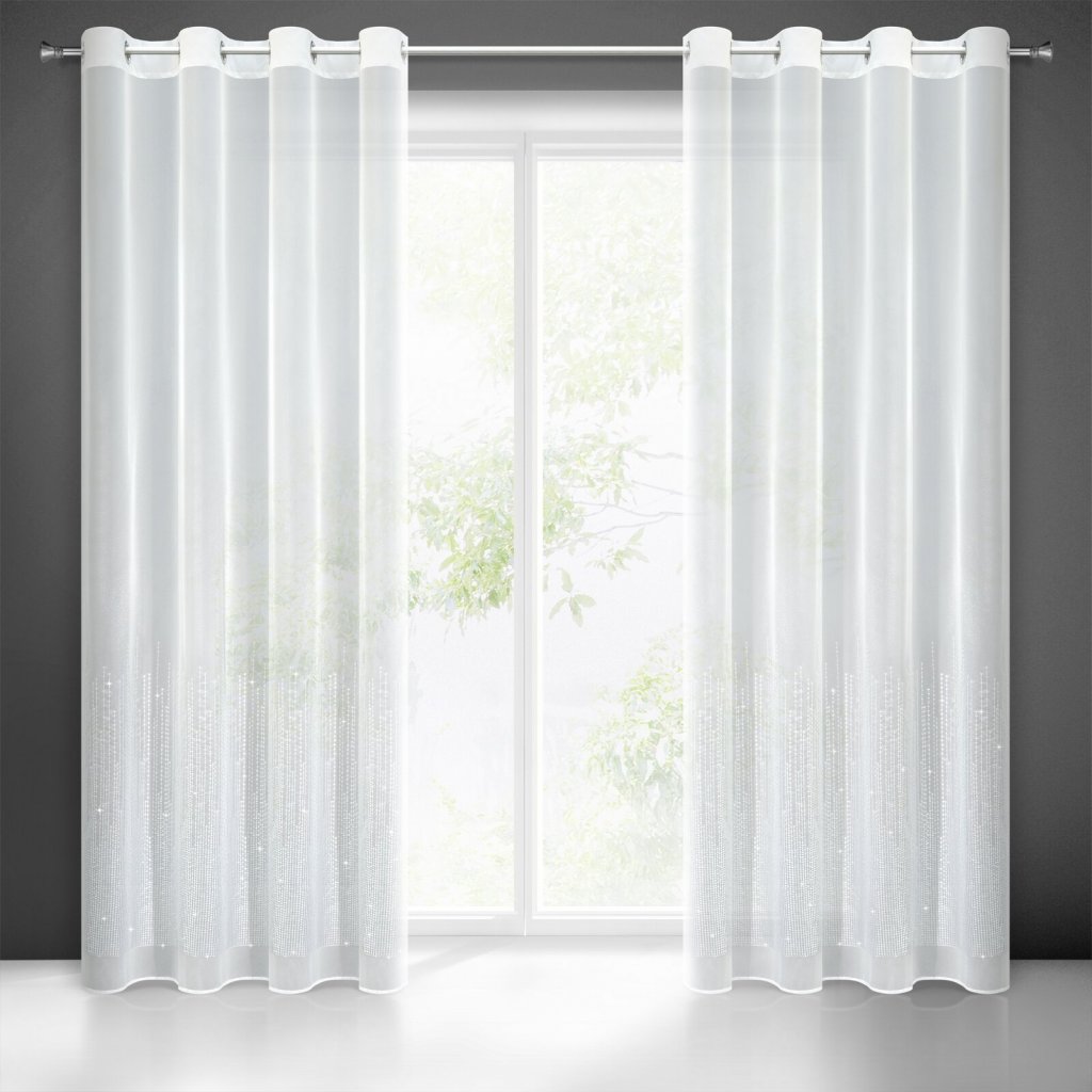 Hladká záclona zdobená flitry. Šířka: 140 cm, délka: 250 cm, barva: bílá, gramáž: 55 GSM, složení: 100% polyesterDoplňkové parametry