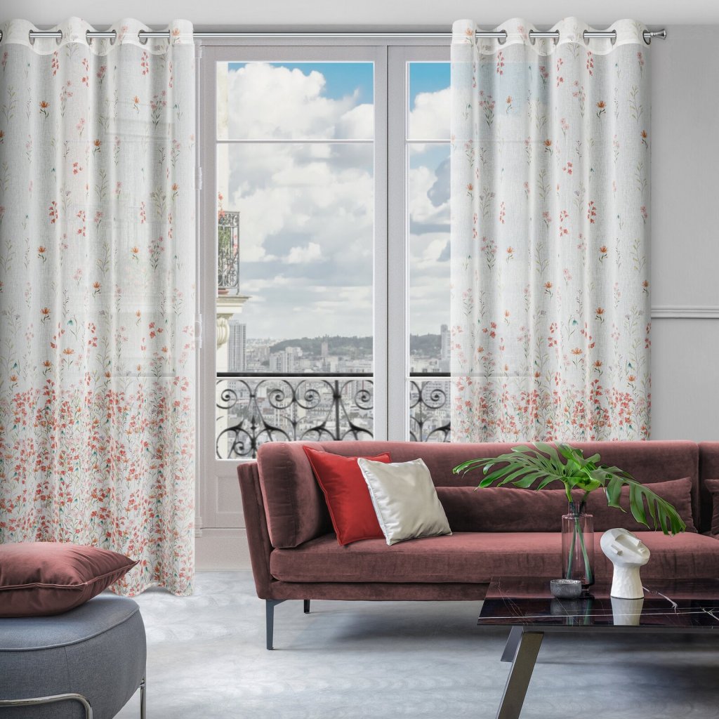 Hotová záclona s květinovým motivem, šířka: 140 cm, délka: 250 cm, barva: vícebarevná, hmotnost: 75 GSM, složení: 100% polyester.Doplňkové parametry