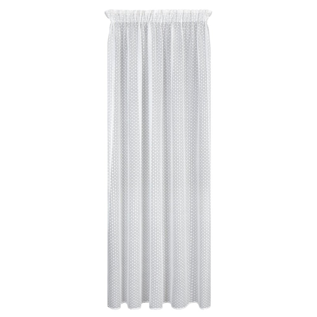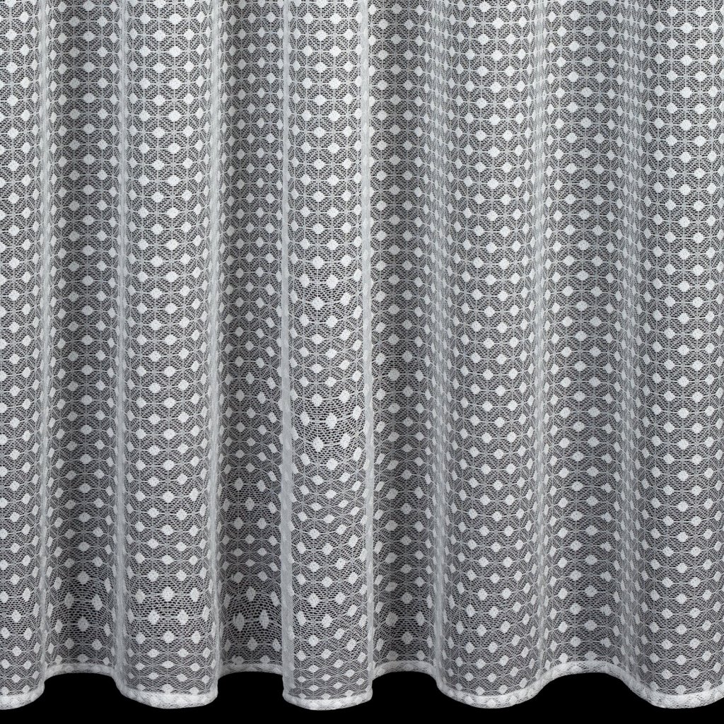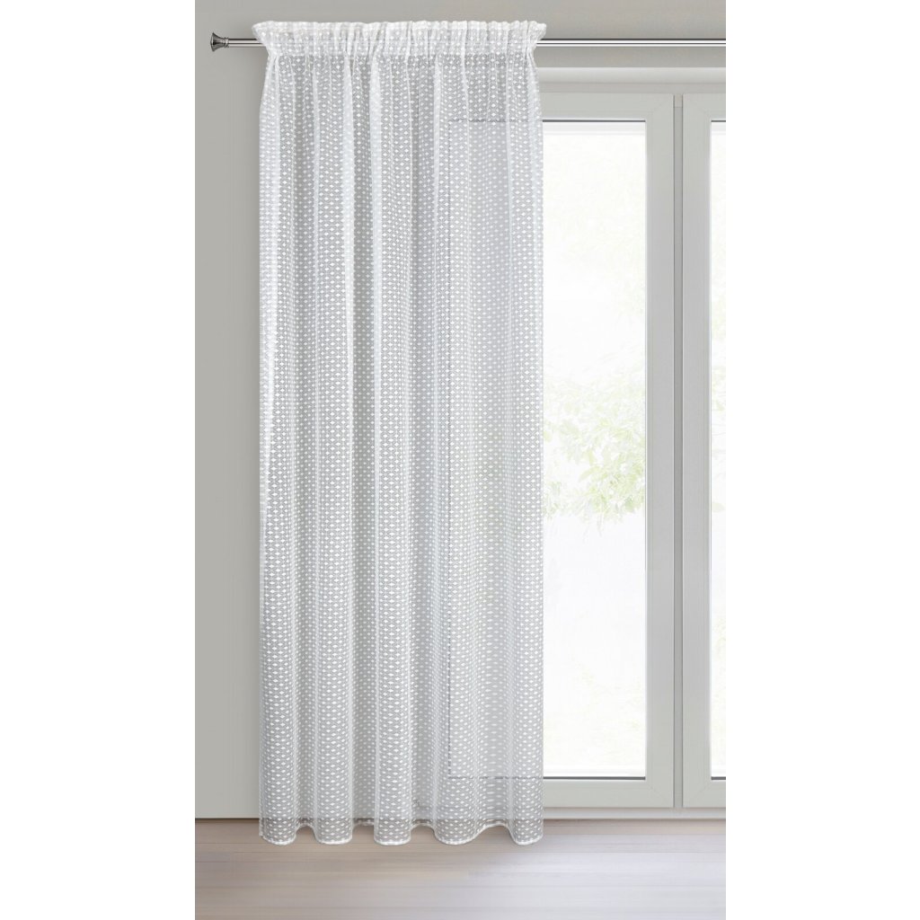 Záclona ALAYA v bílém provedení s geometrickým vzorem. Jedinečný geometrický vzor je prošívaný průhlednou nití, která dodává závěsu jemnou strukturu a lehkost. Šířka: 140 cm, délka: 270 cm, barva: bílá, hmotnost: 125 GSM, složení: 100% polyester.Doplňkové parametry