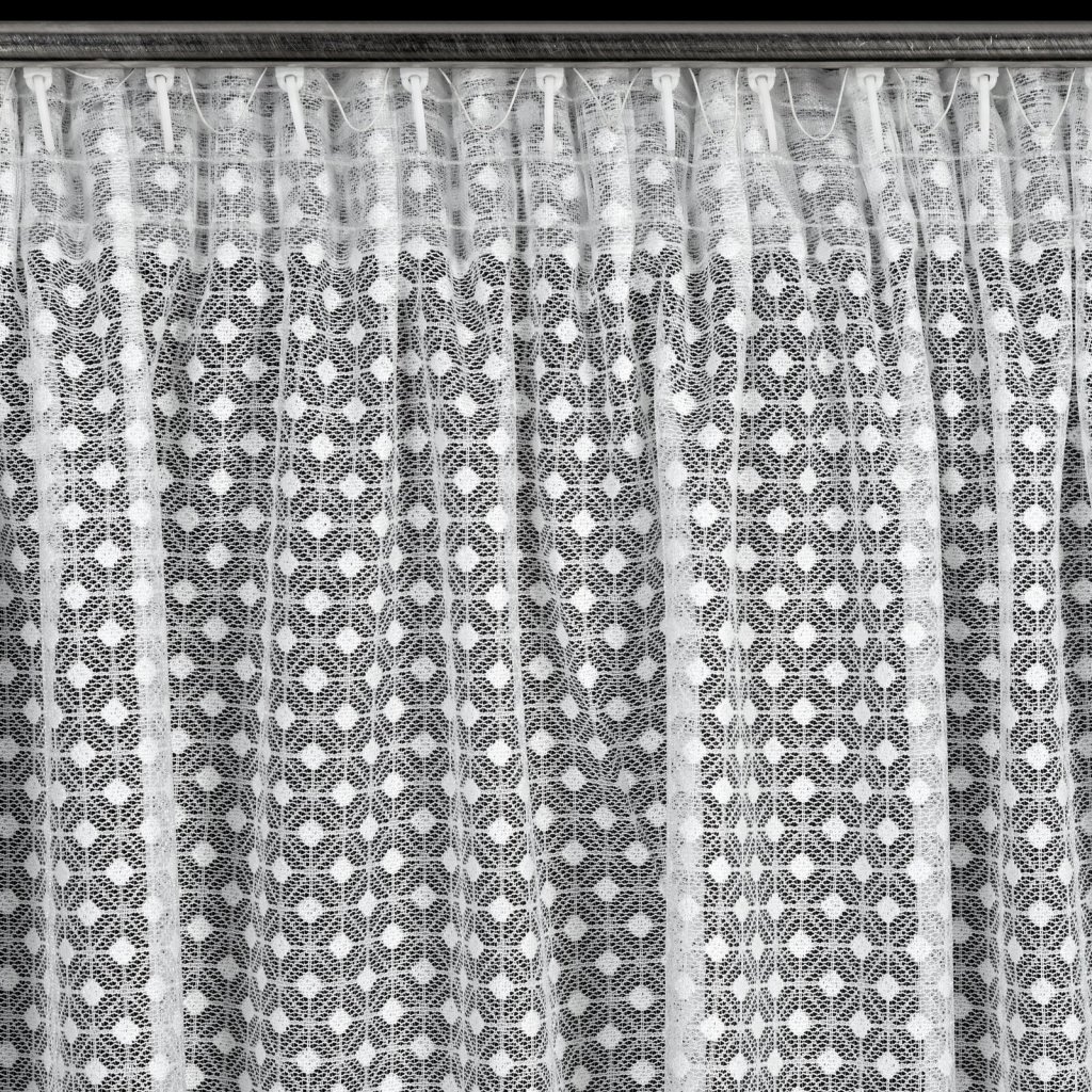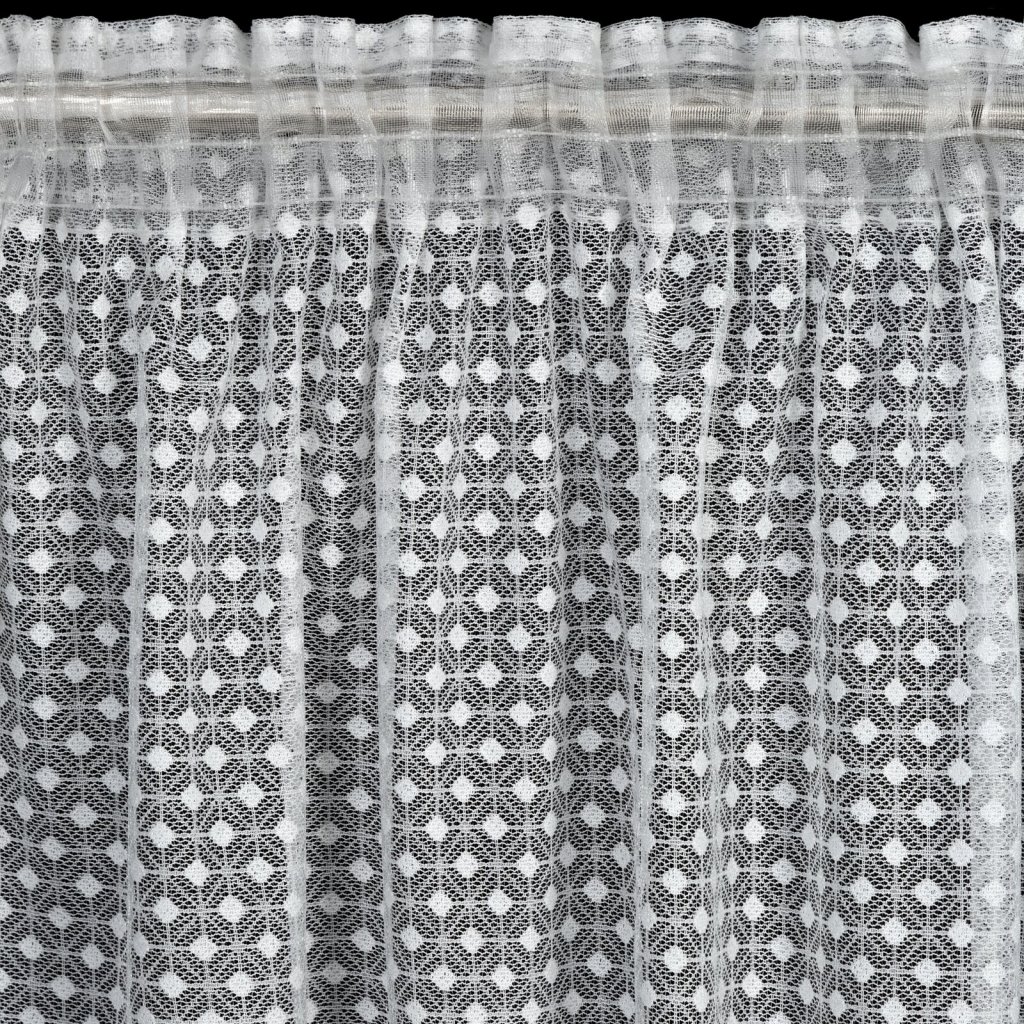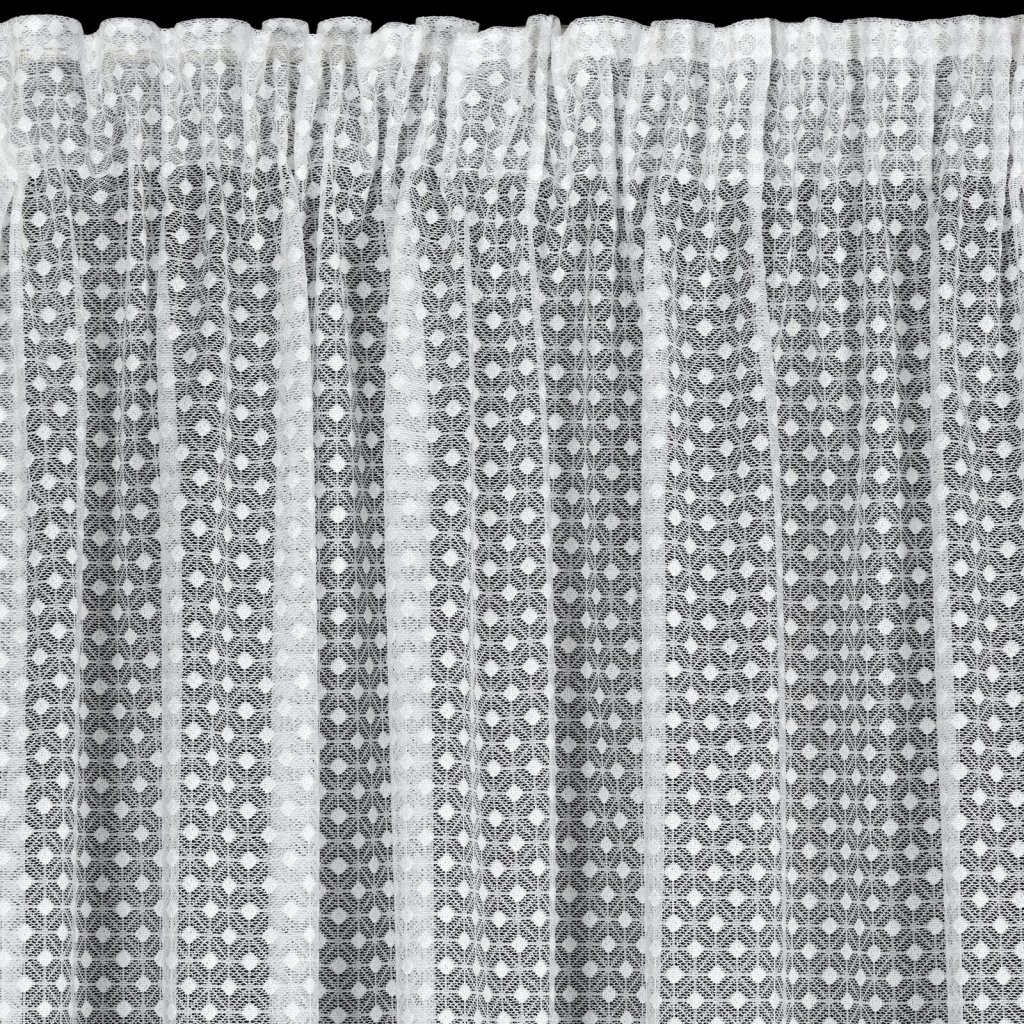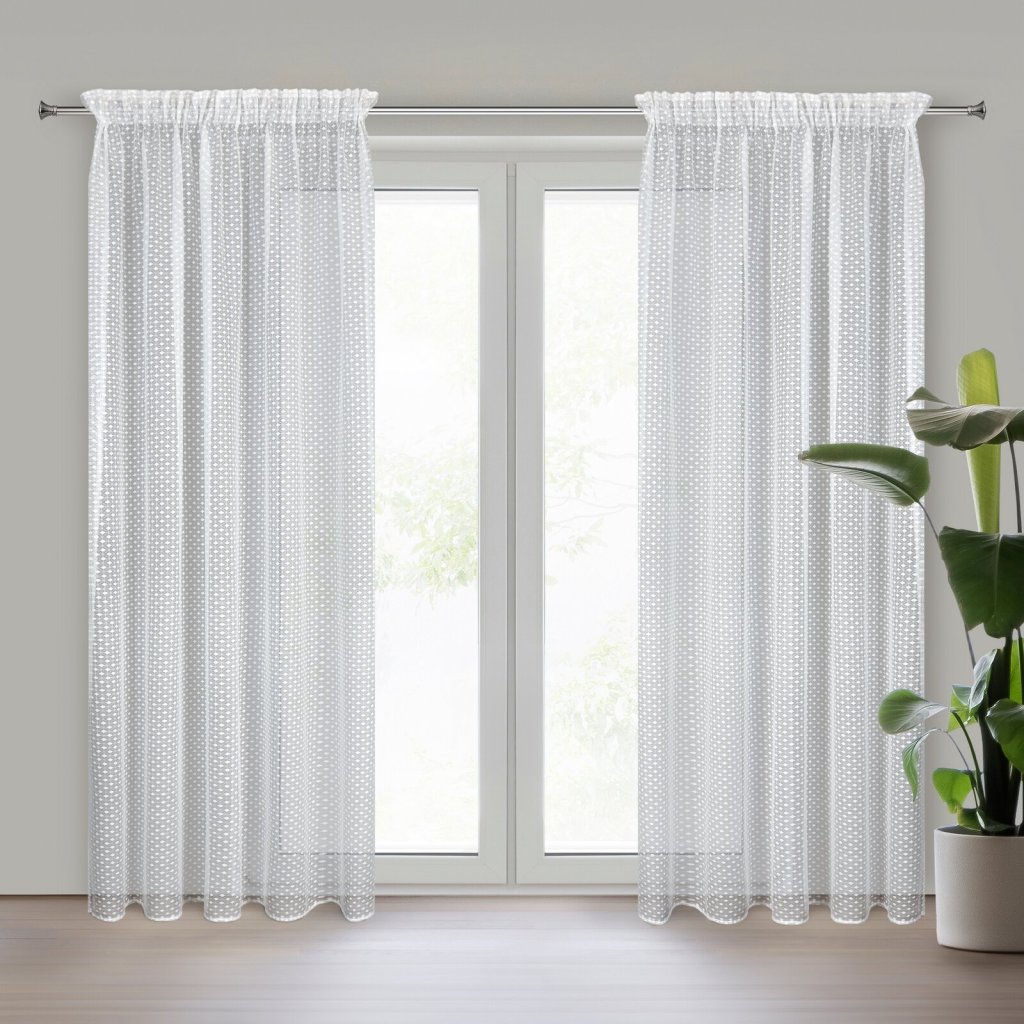 Záclona ALAYA v bílém provedení s geometrickým vzorem. Jedinečný geometrický vzor je prošívaný průhlednou nití, která dodává závěsu jemnou strukturu a lehkost. Šířka: 140 cm, délka: 270 cm, barva: bílá, hmotnost: 125 GSM, složení: 100% polyester.Doplňkové parametry