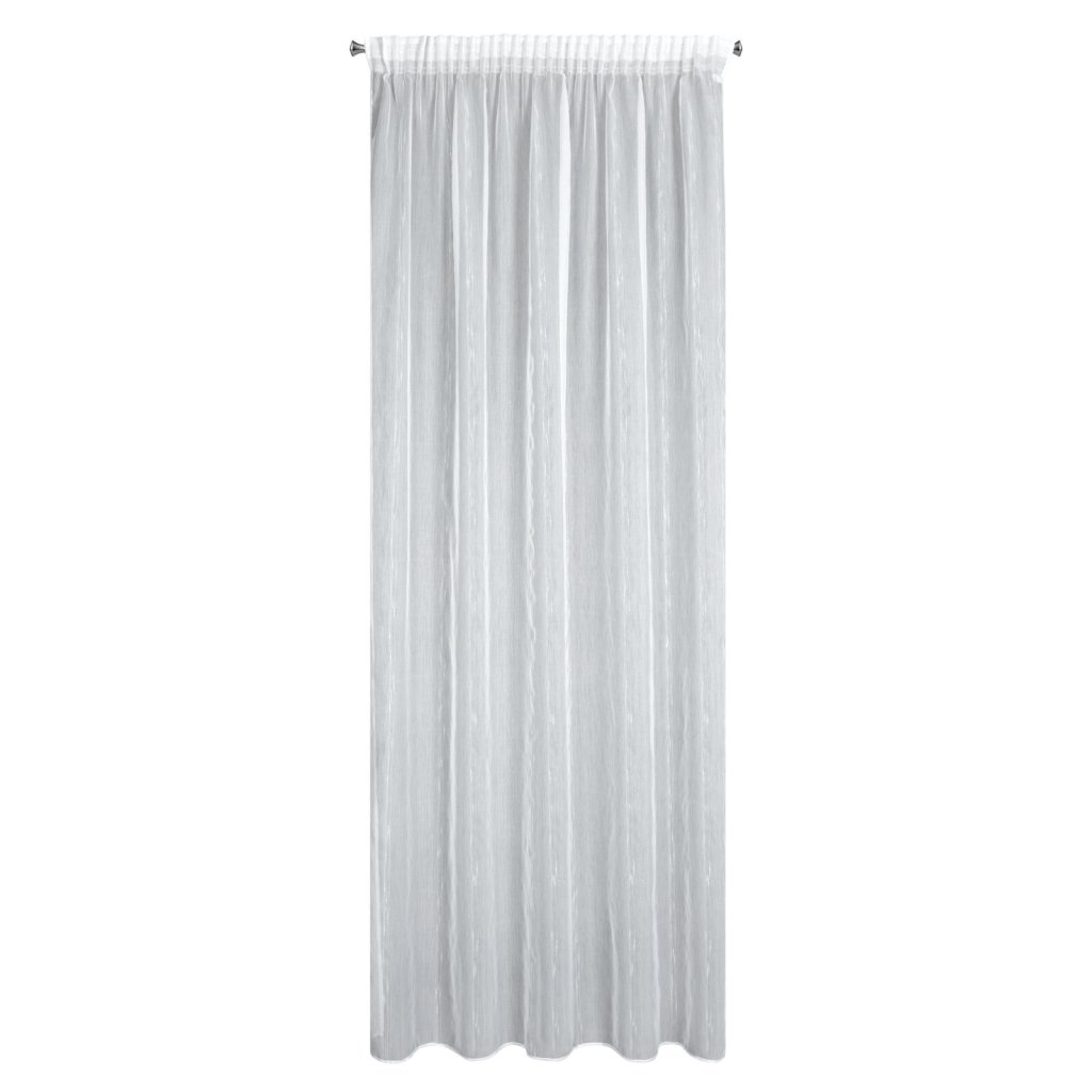 Hotová záclona se strukturou dešťových kapek s lesklou nití, šířka: 140 cm, délka: 280 cm, barva: bílá, gramáž: 70 GSM, složení: 100% polyester.Doplňkové parametry