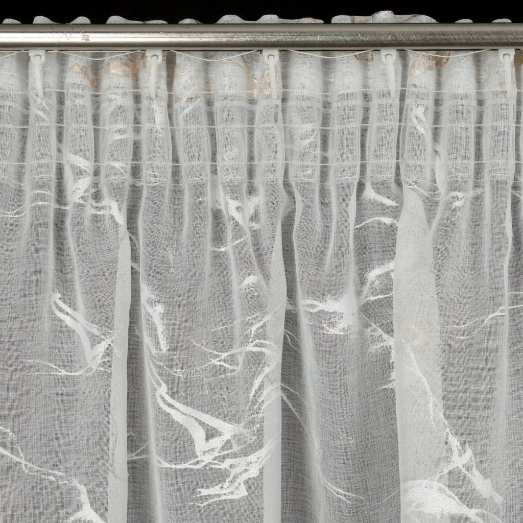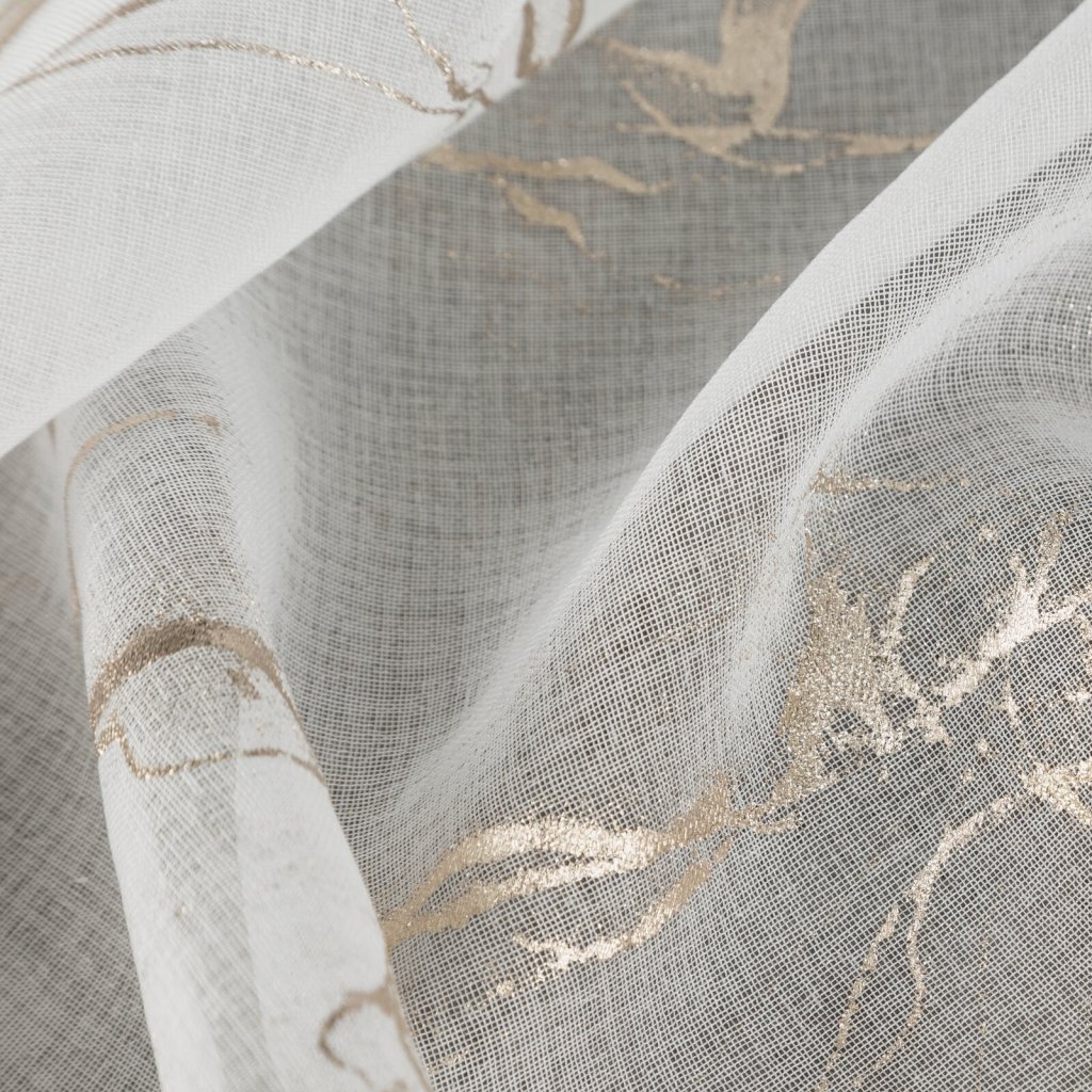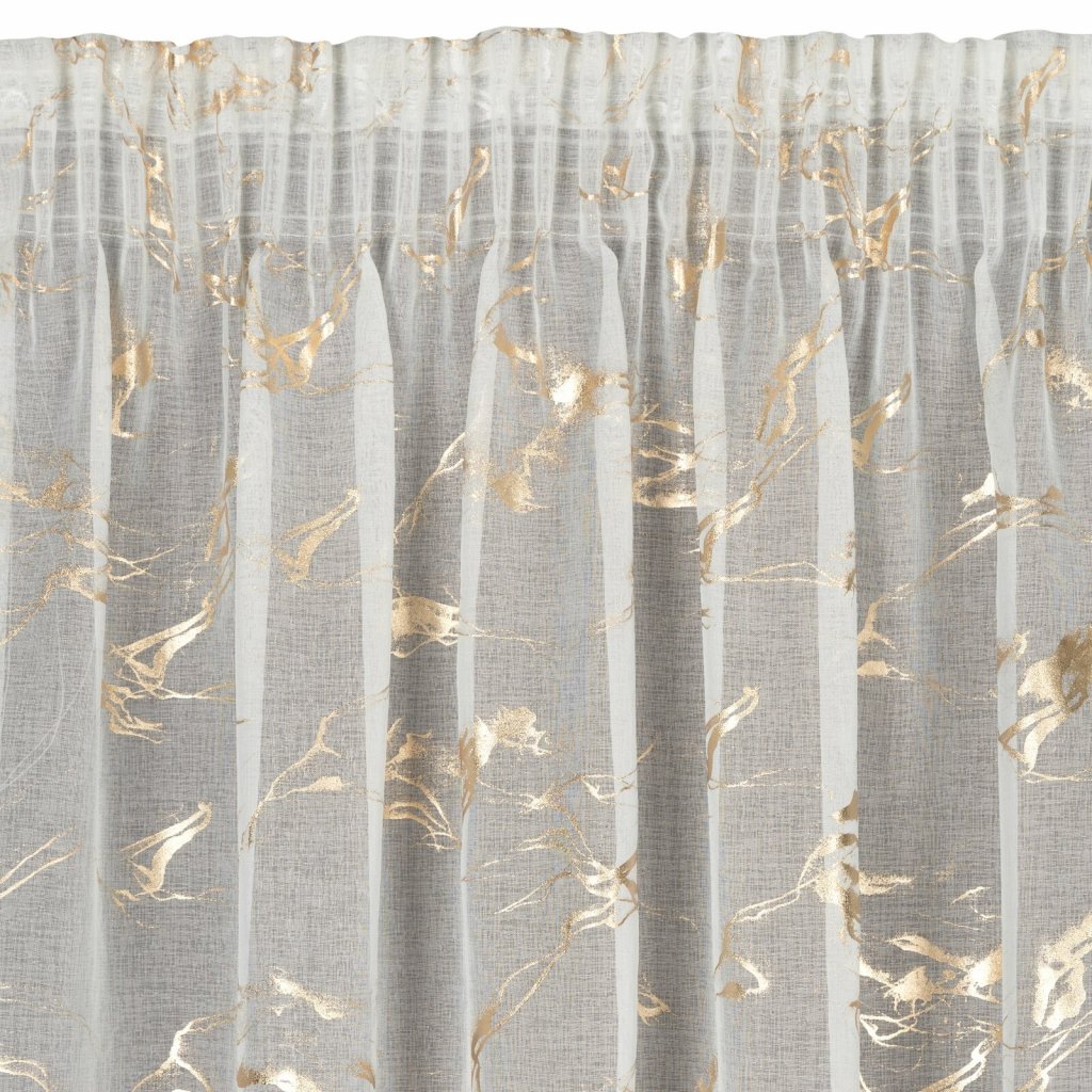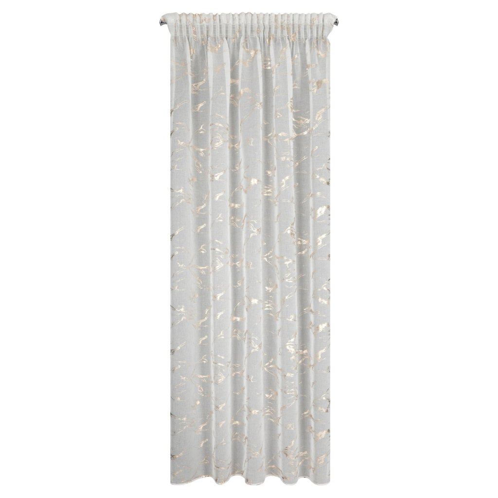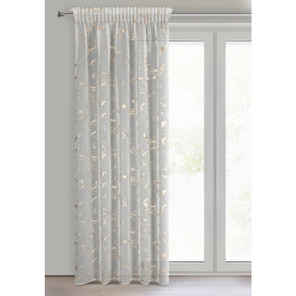 Bílá záclona se zlatým potiskem, šířka: 140 cm, délka: 270 cm, barva: bílá a zlatá, hmotnost: 72 GSM, složení: 100% polyester.Doplňkové parametry