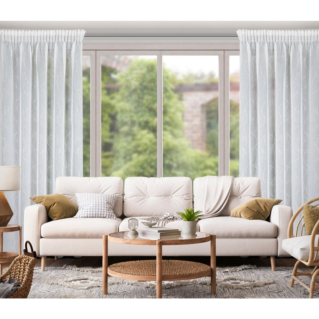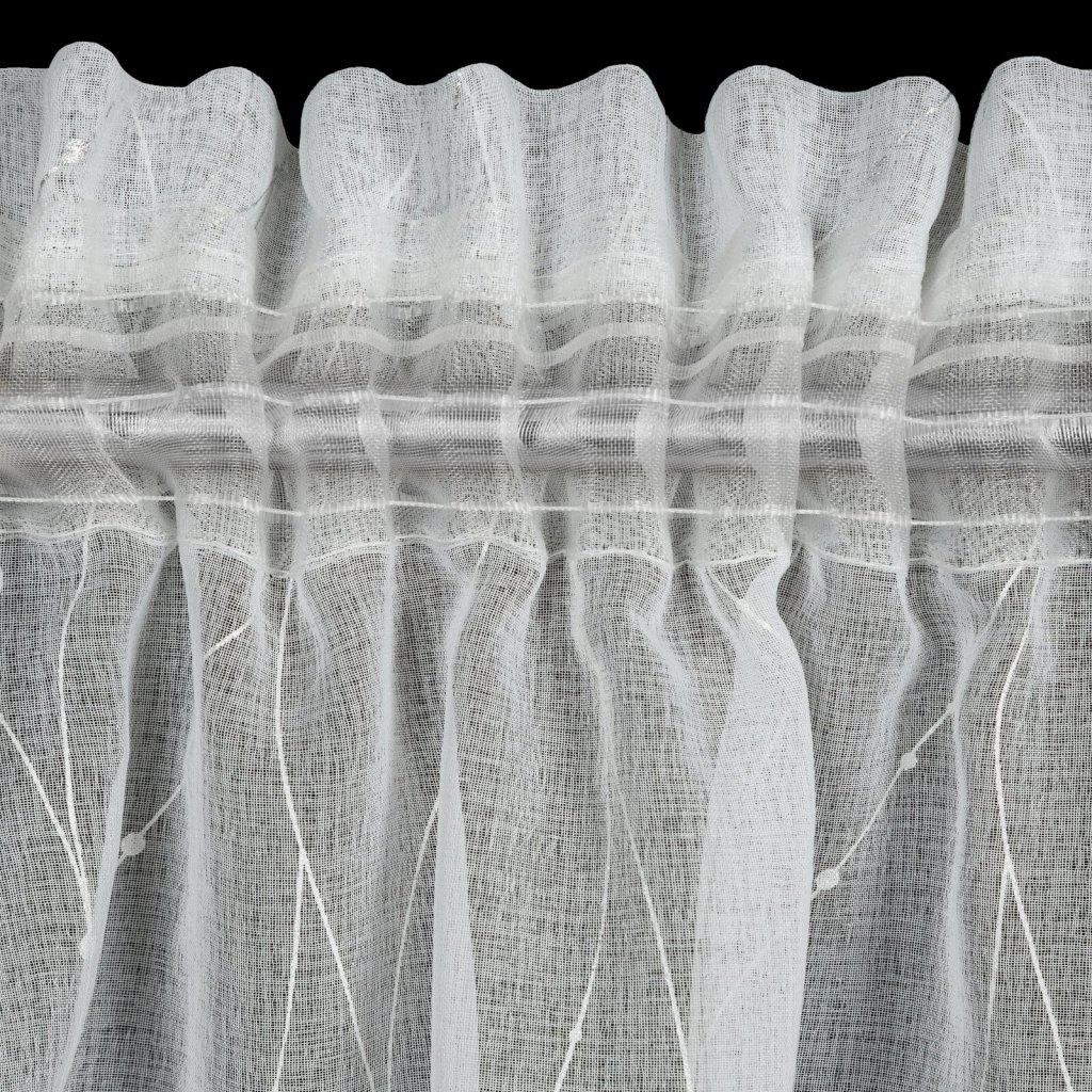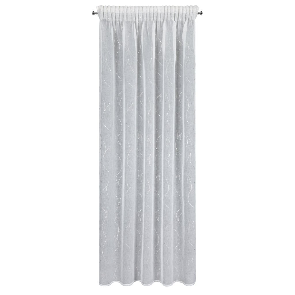 Hotová záclona se stříbrným potiskem, šířka: 140 cm, délka: 270 cm, barva: bílá, hmotnost: 72 GSM, složení: 100% polyester.Doplňkové parametry