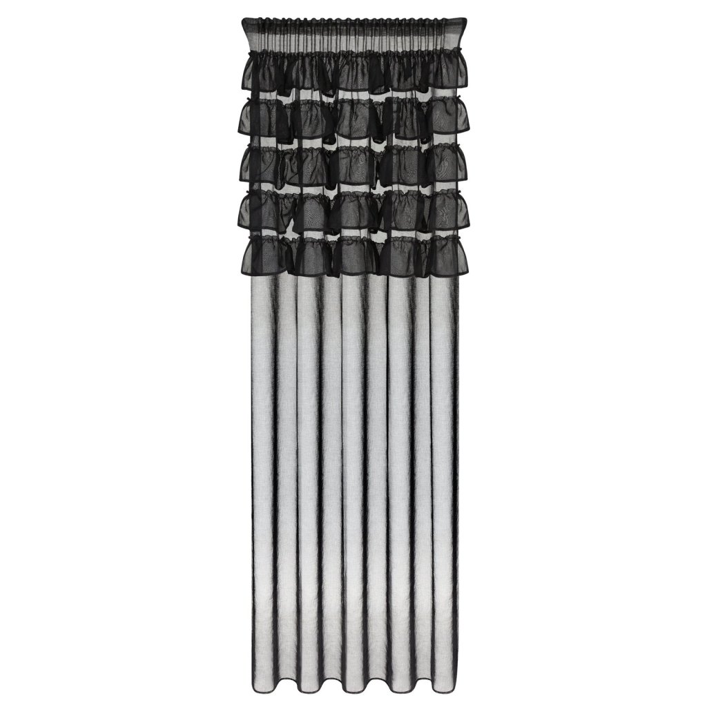Hotová záclona zdobená volánky v horní části, šířka: 140 cm, délka: 270 cm, barva: černá, hmotnost: 70 GSM, složení: 100% polyester.Buďte první, kdo napíše příspěvek k této položce.