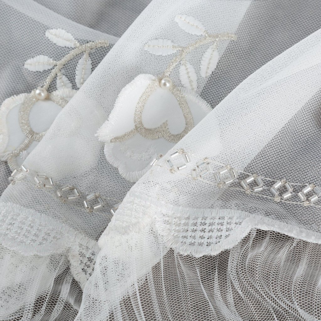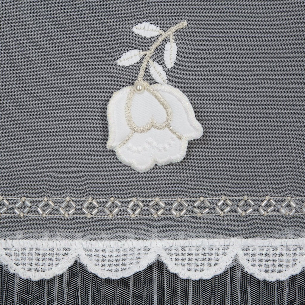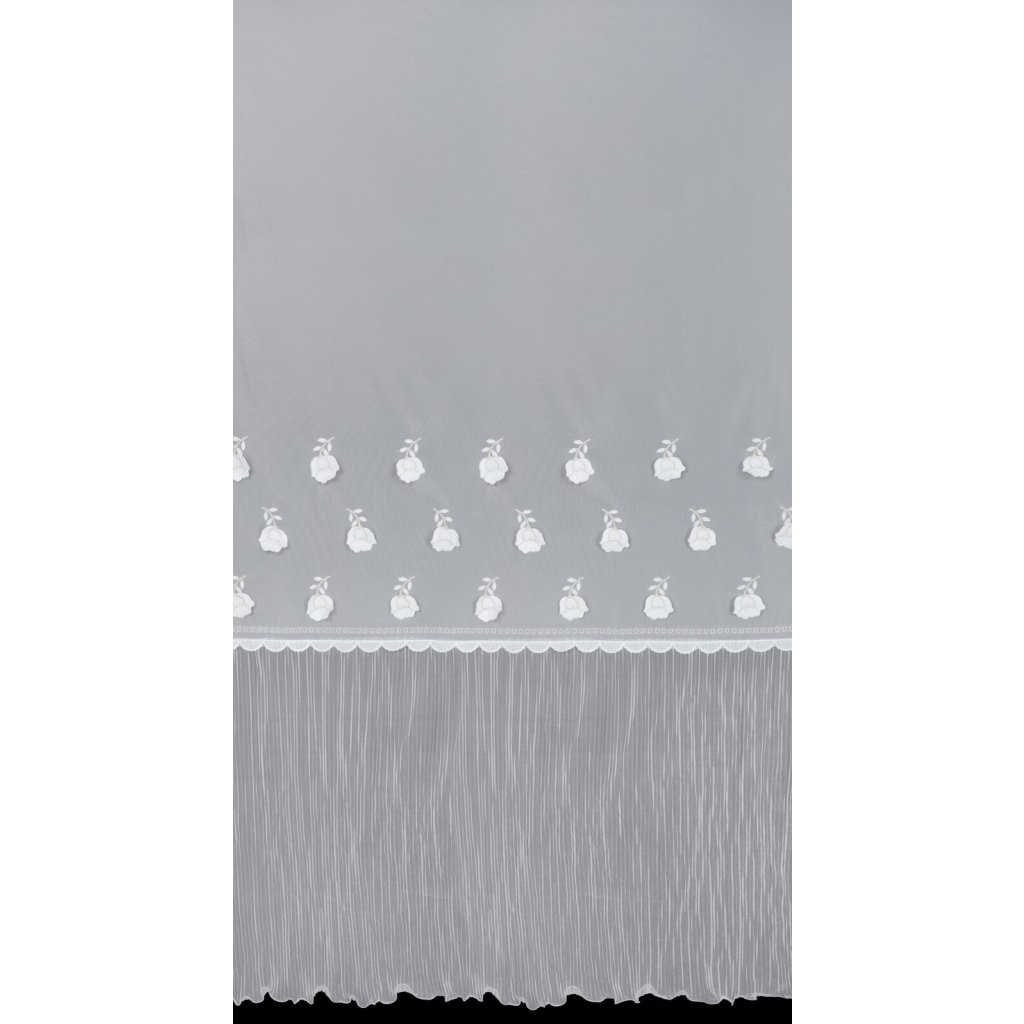 Záclona zaujme dekorativní květinovou aplikací, která mu dodává jedinečný charakter a volán ve spodní části dodává lehkost a stylové zakončení. Šířka: 140 cm, délka: 270 cm, barva: bílá, hmotnost: 50 GSM, složení: 100% polyester.Doplňkové parametry
