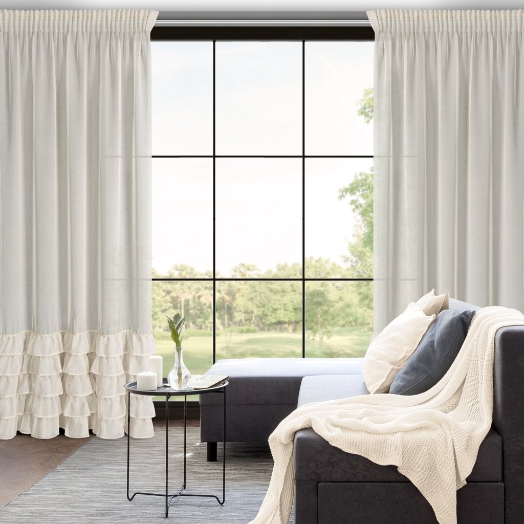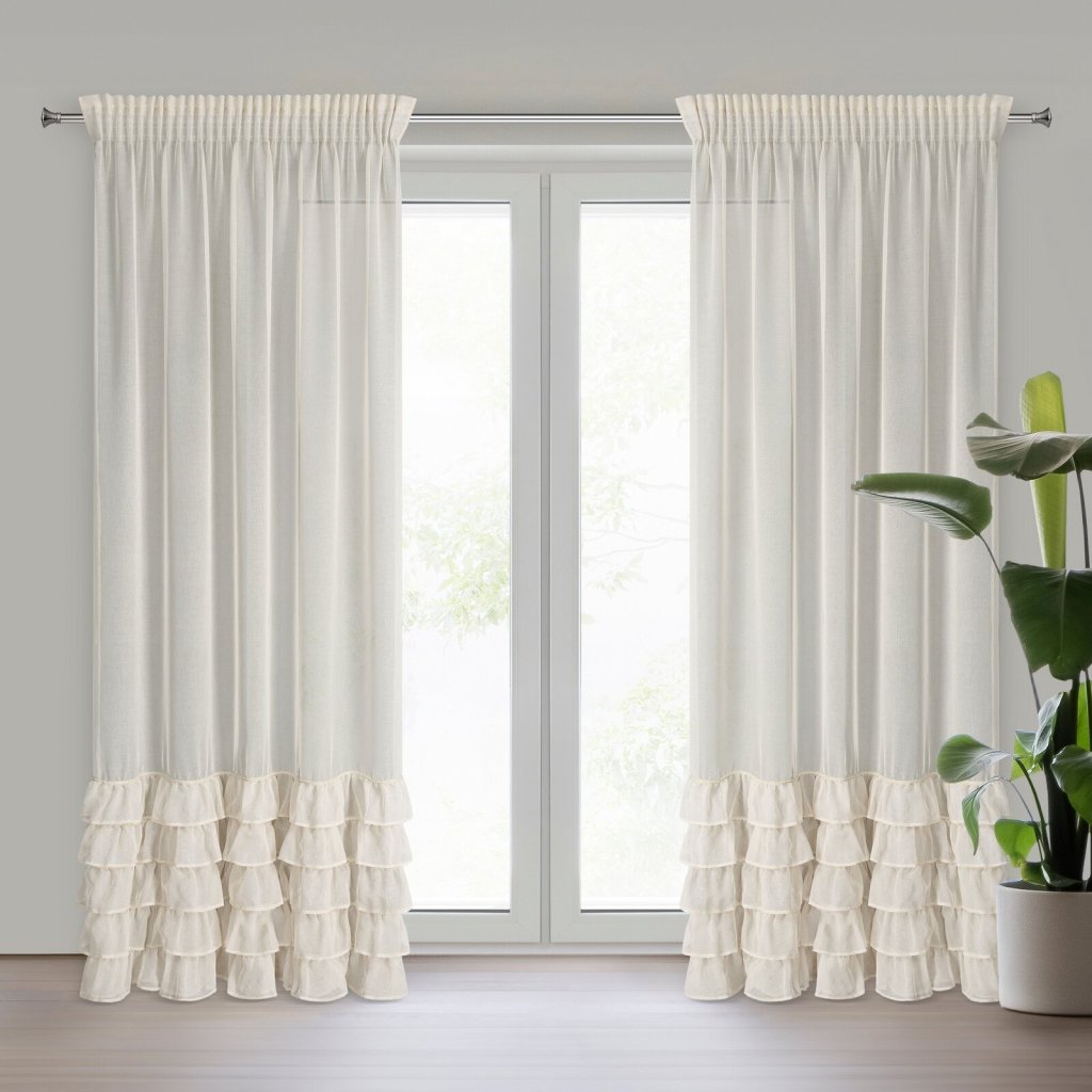 Hotová záclona s volánky, šířka: 140 cm, délka: 270 cm, barva: béžová, hmotnost: 70 GSM, složení: 100% polyester.Doplňkové parametry