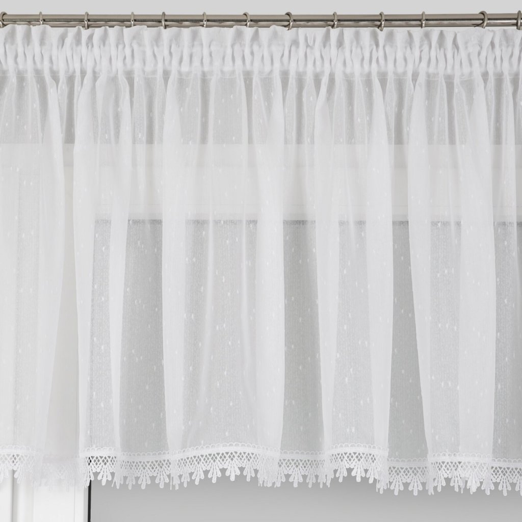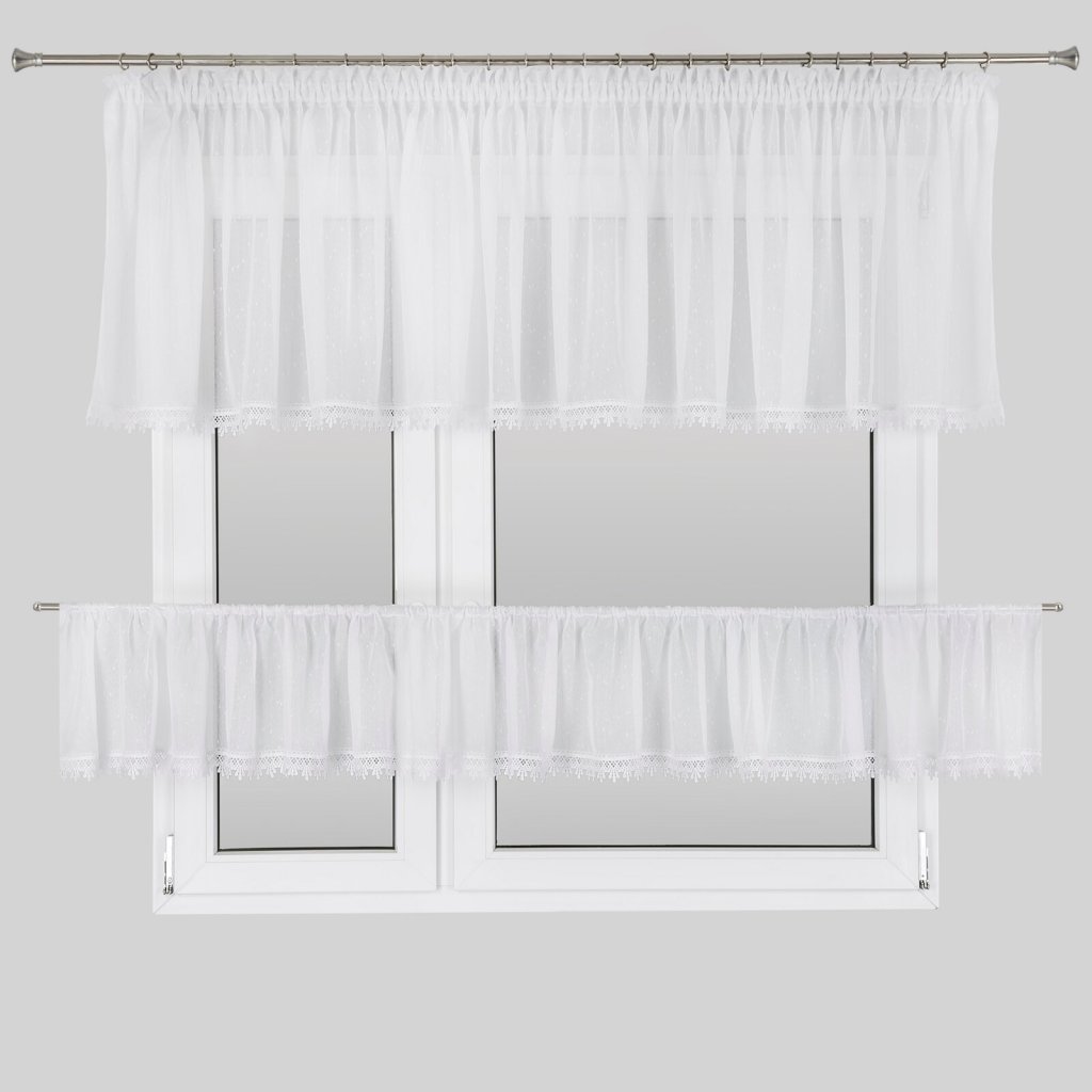 Záclona s ozdobnou krajkou. Šířka: 400 cm, délka: 65 , 400 cm, barva: bílá, složení: bílá: 100 % polyesterDoplňkové parametry