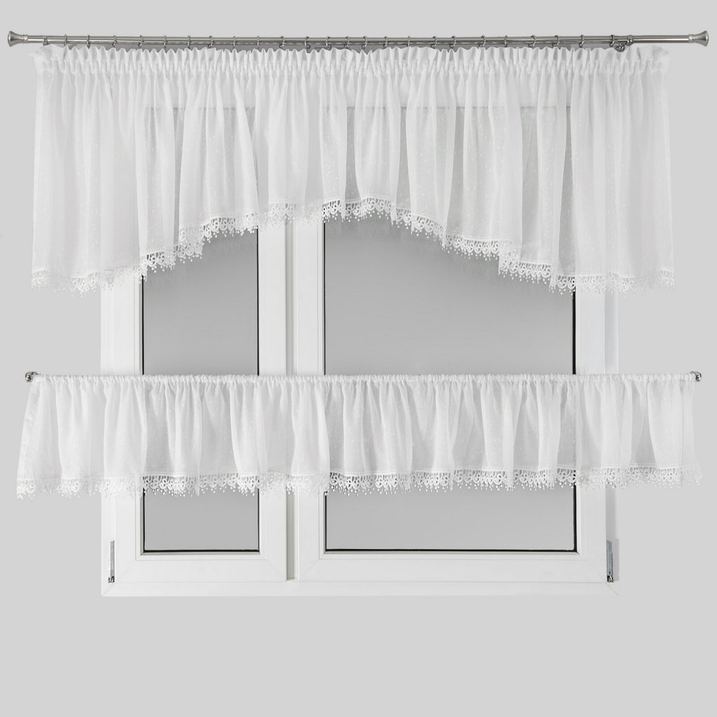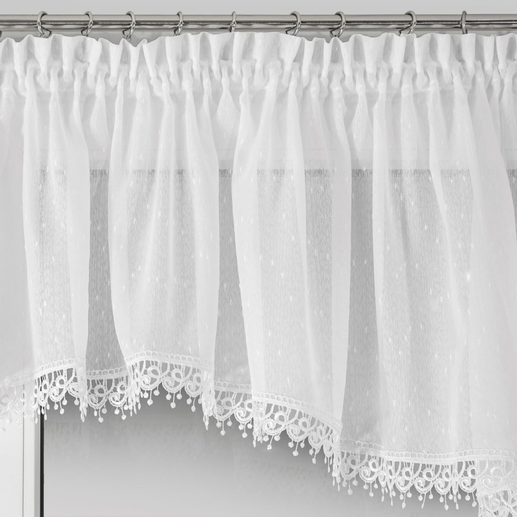 Záclona s ozdobnou krajkou. Šířka: 400 cm, délka: 65 cm, barva: bílá, složení: 100 % polyesterDoplňkové parametry
